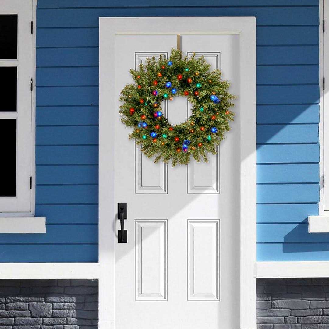 Deck the halls with classic style as you hang up this traditional faux fir wreath. Made to mirror the real thing, the PVC branches and needles stay brown and green all year long. This artificial wreath has a lush appearance and comes pre-strung with 100 multicolor stay-lit LED bulbs powered by three included AA batteries. It also comes with a convenient plug-in design if you don’t want to use batteries, so you can turn it on or off depending on your mood or time of day. Ideal for indoor and covered outdoor locations.