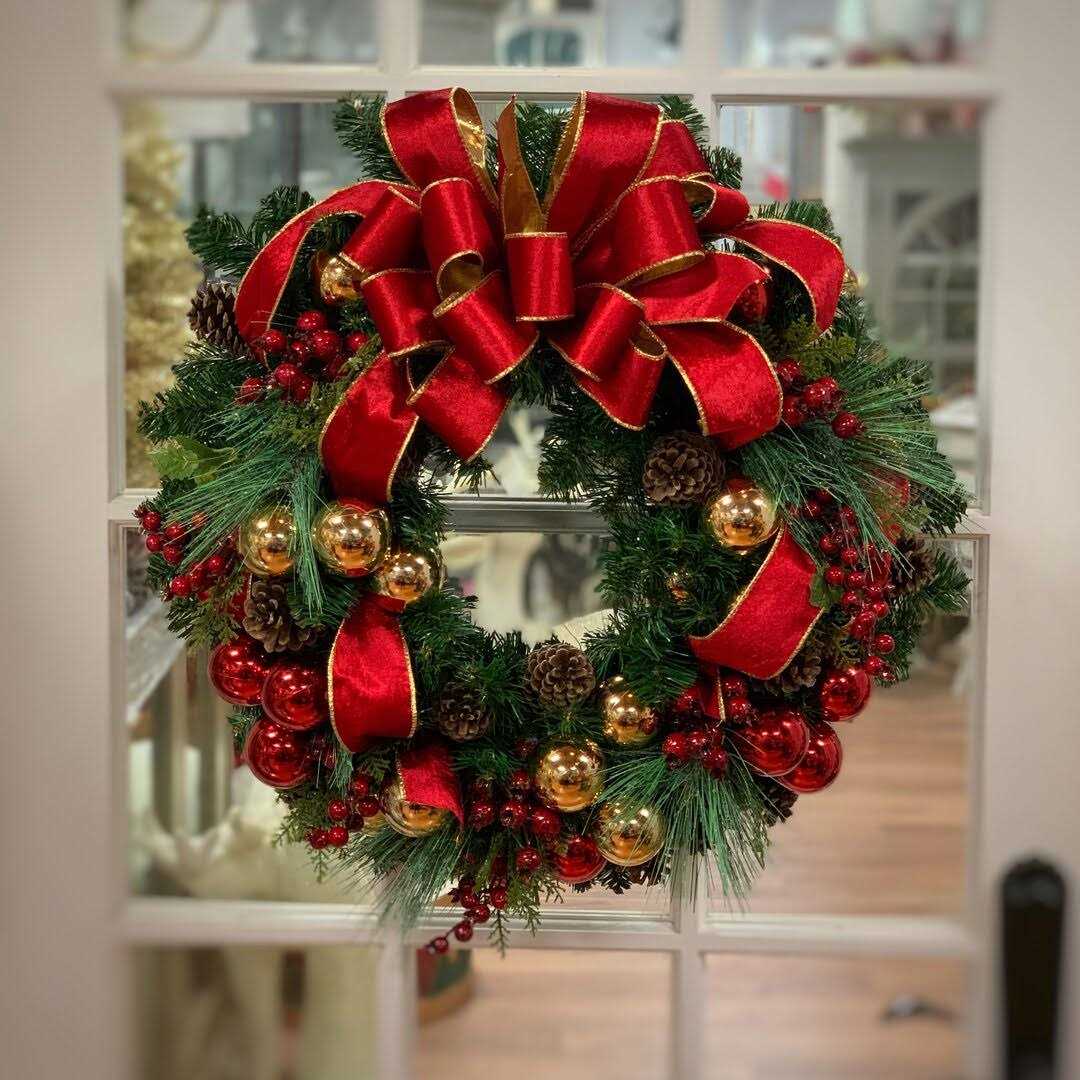 Welcome the holidays into your home with the festive, glamorous look of this handcrafted artificial wreath. Designed with a sprinkling of mixed red berries, natural pine cones, red and gold ornaments, and a big red and gold ribbon, it offers the look of an evergreen wreath without any of the upkeep. That means you don’t have to worry about cleaning up those pesky pine needles and you can use it year after year.