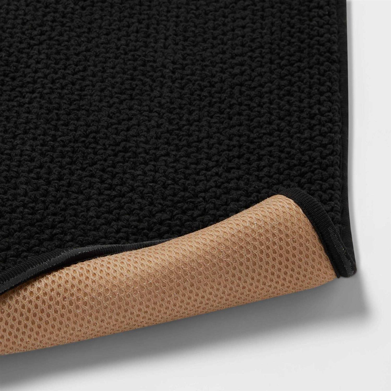 Memory foam bath mat – Lightweight woven construction – Made of 100% cotton – Machine wash and tumble dry – STANDARD 100 by OEKO-TEX certifiedDescriptionGive a luxurious spa-like touch to your bathroom with this Performance Plus Cotton Memory Foam Bath Rug from Threshold. The rectangular bath mat features a lightweight woven construction in a textured solid color to effortlessly complement your bath space. It’s made from 100% cotton and memory foam, which makes your feet comfortable when standing on it and absorbs moisture from your wet feet to keep your space clean and dry. – Threshold: Looks like home, feels like you. – Features: Rectangle (shape)Number of Pieces: 1Dimensions (Overall): 34 Inches (L), 20 Inches (W)Fabric Name: Woven – Style: Bath Rugs – Construction Technique: Machine Made – Textile Material: 100% Cotton – Backing Material: 100% Foam – Industry or Government Certifications: STANDARD 100 by OEKO-TEXFabric Weight Type: Lightweight (300-450 GSM)Care and Cleaning: Machine Wash & Tumble Dry