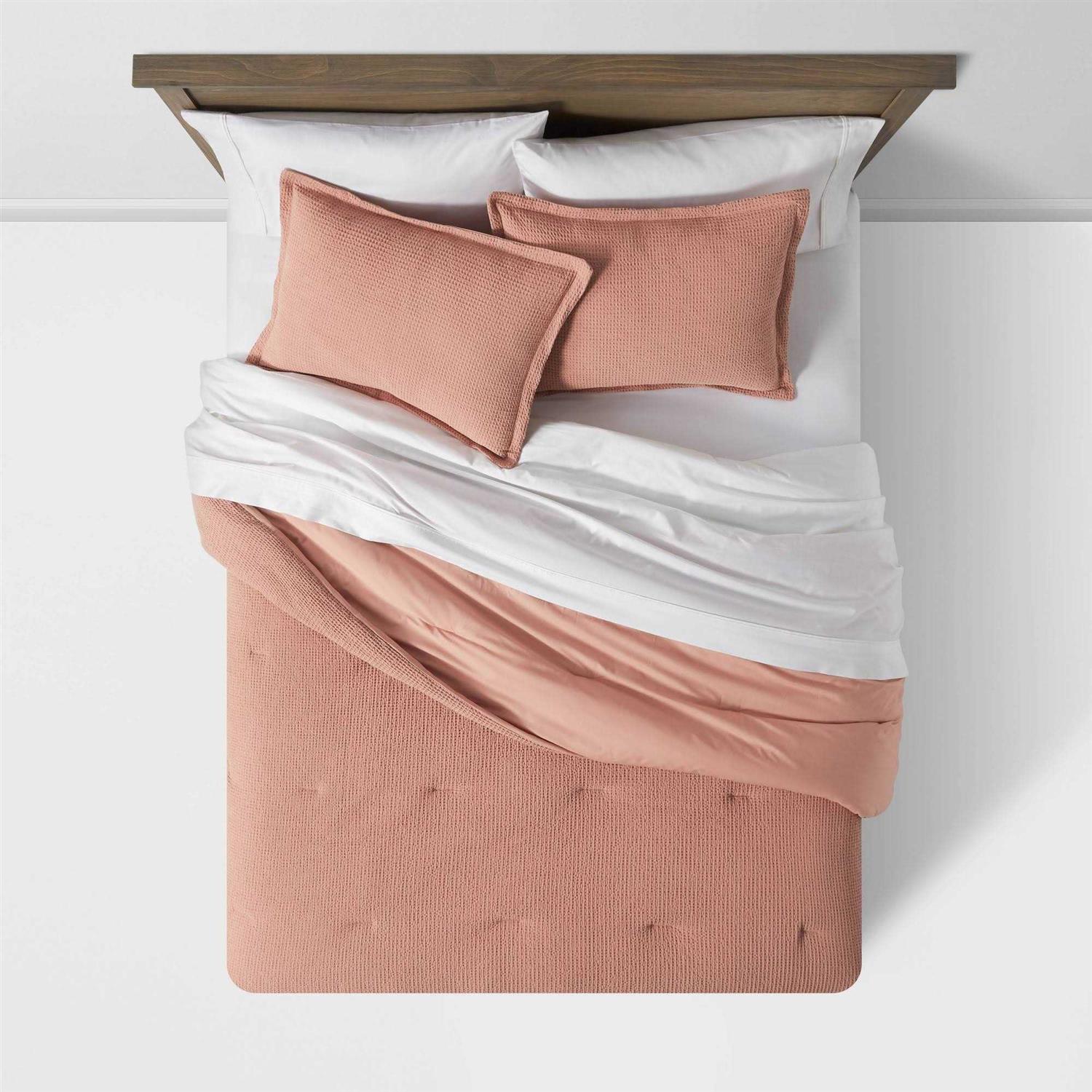 Full/Queen Washed Waffle Weave Comforter x Sham Set Warm Blush – Threshold