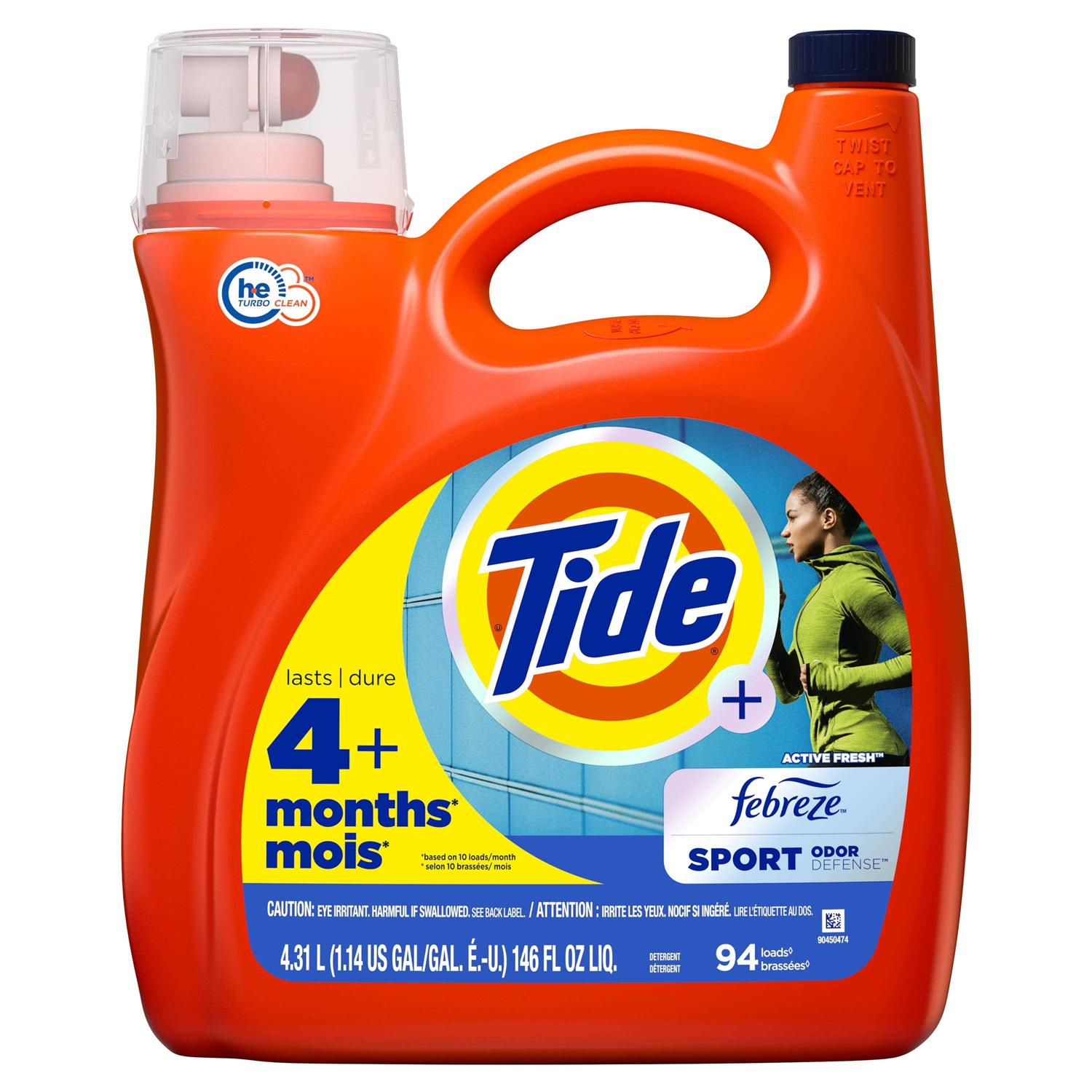 Tide Plus Febreze Sport Odor Defense HE Turbo Clean liquid laundry detergent offers excellent clean and odor removal, plus the Febreze freshness that helps your workout and athletic gear stay fresh up to 3x longer*. It effectively targets tough stains and removes even week-old sweat odors. Also, the Tide’s formula contains special scent-renewal technology that releases freshness as you move, helping keep your fabrics smelling great all day. Enjoy a wonderful scent experience that lasts and benefit from even more odor-fighting power. *vs. Tide Original