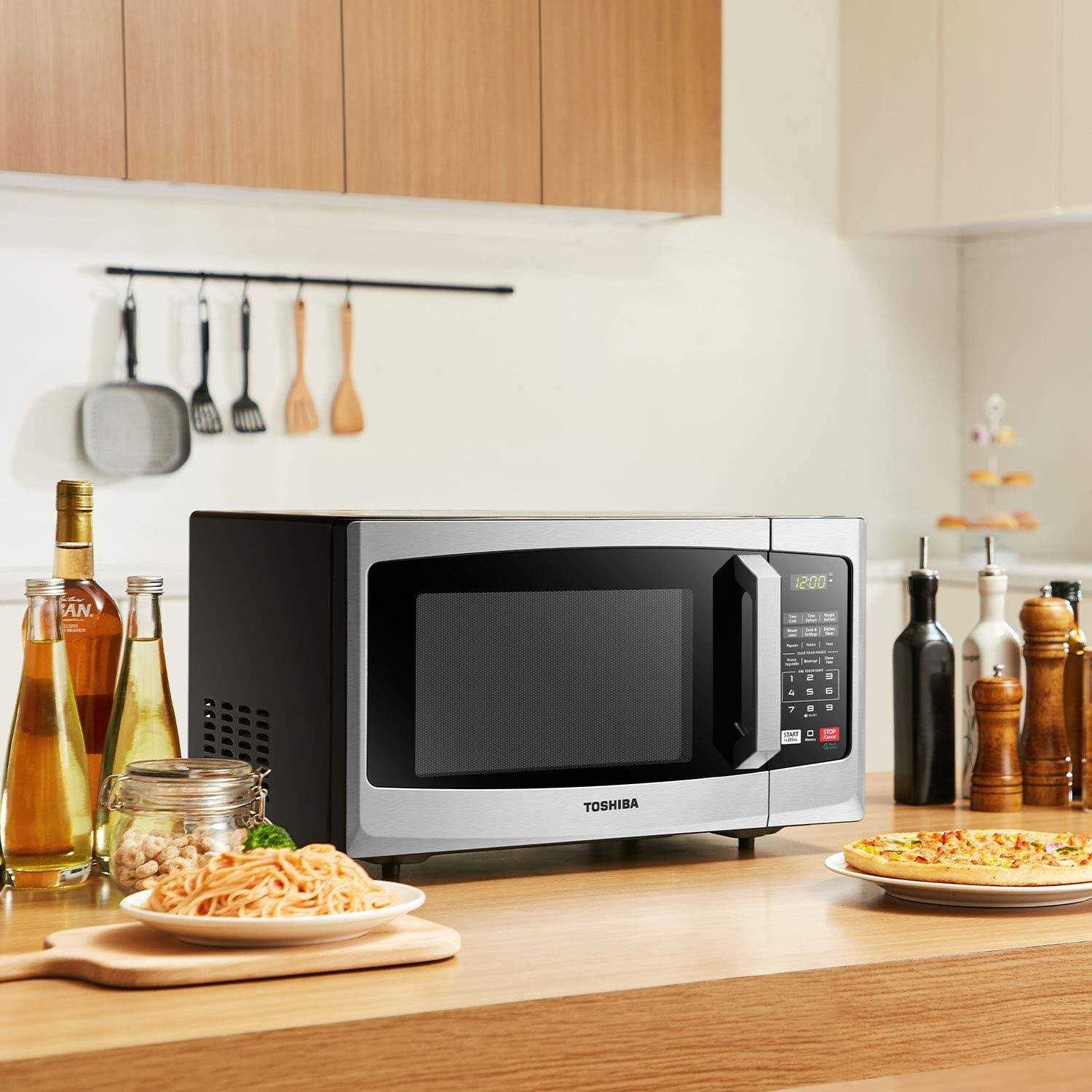Toshiba EM925A5A-SS Microwave Oven with Sound On/Off Eco Mode and LED Lighting 0.9 Cu. ft Stainless Steel