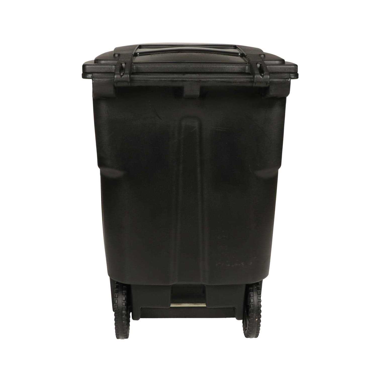 Toter Trash Can with Wheels x Attached Lid – Black – 96 Gal