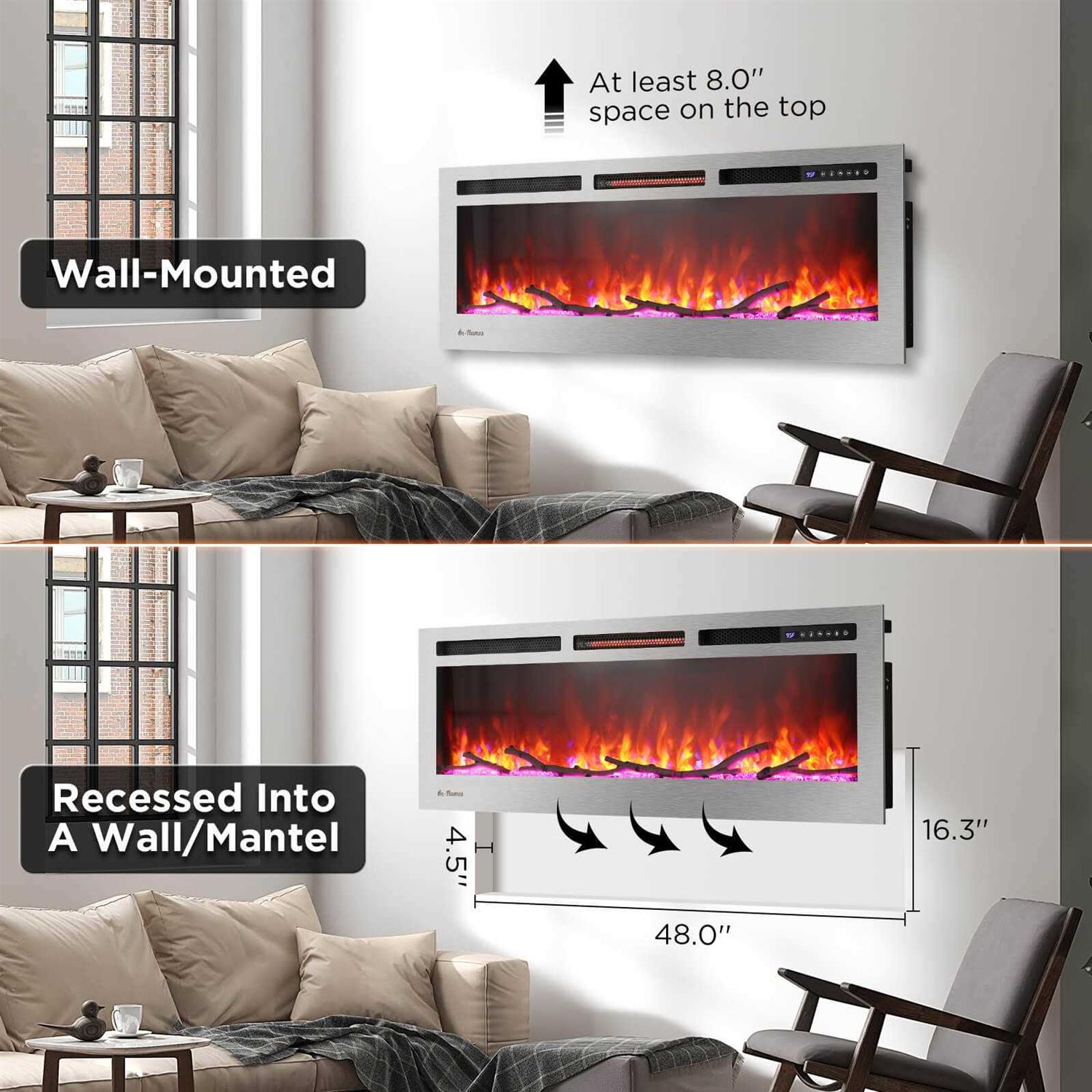 TURBRO 50 inch Smart WiFi Infrared Electric Fireplace with Sound Crackling and Realistic Flame, 1500W Quartz Heater, Recessed or Wall Mounted,