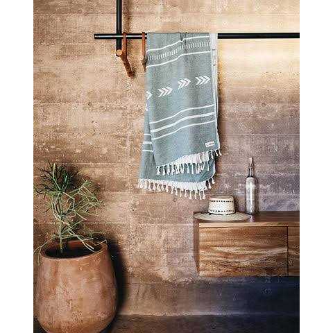 Southwestern simple design, made from Turkish cotton for a softer hand feel, single weave jacquard and twisted tassel fringe. Approx 35″ x 66″ (88.9cm x 152.4cm) Color: Green 100% Turkish Cotton Sand Resistant Design! Made and Loomed in Turkey Care Details Machine wash on delicate or gentle, using cold water with like colors. Best practice is to hang to dry. Tumble dry low is also acceptable. Do not use Bleach, Fabric Softeners, and Dryer Sheets.