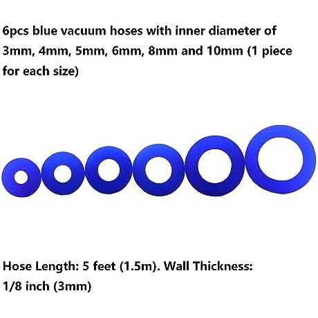 - Package includes 6pcs black vacuum hoses with inner diameter of 3mm, 4mm, 5mm, 6mm, 8mm and 10mm (1 piece for each size))