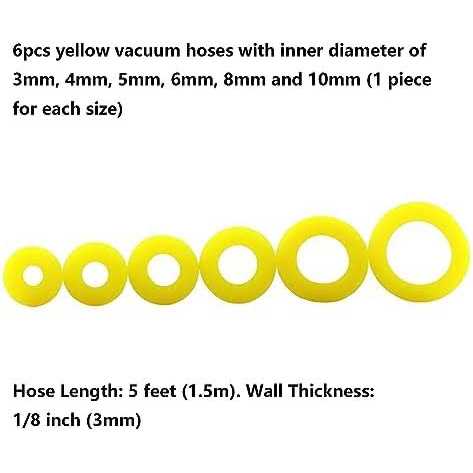 - Package includes 6pcs black vacuum hoses with inner diameter of 3mm, 4mm, 5mm, 6mm, 8mm and 10mm (1 piece for each size))