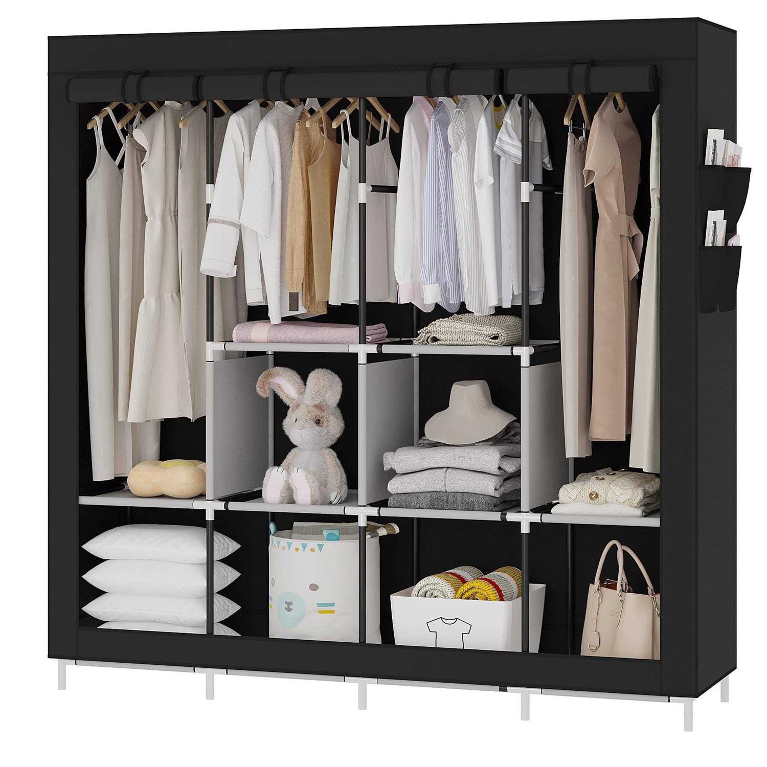UDEAR Portable Closet Large Wardrobe Closet Clothes Organizer with 6 Storage Shelves, 4 Hanging Sections 4 Side Pockets,Black
