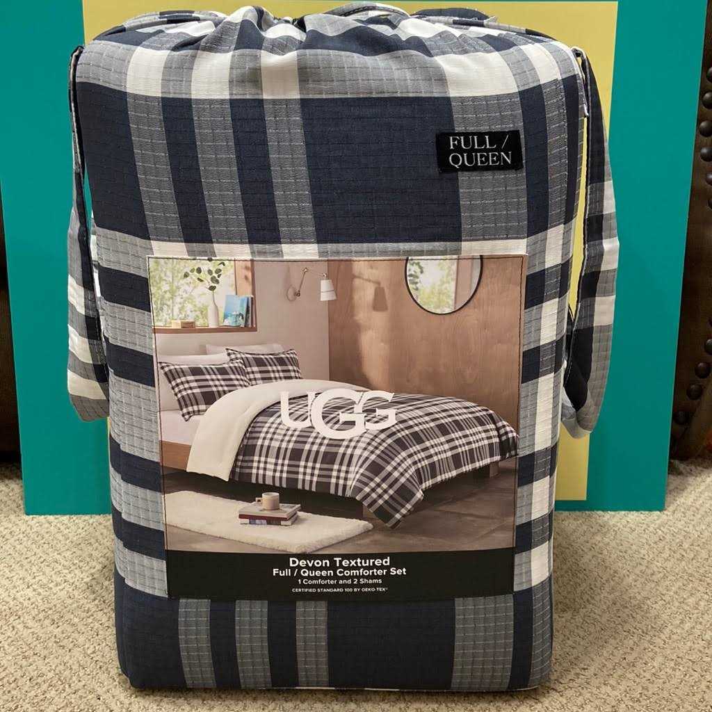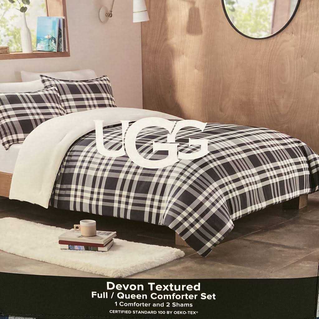 Give your bedroom a sophisticated and contemporary update with the Devon Comforter Set from Ugg, featuring a reversible design and stylish colorways. Style Keywords: Trim Embellishment,Comforter,Dark,Scandinavian,3 Piece,Polyfill,Quilted,Coastal,Tassel,Polyester,Queen,Set,Logo,Full,Winter,Rustic,Words,Solid,Maximalism,Plaid,Oeko Tex Certified,Flange,Frayed,Reversible,Neutral,Light,Minimalist,Sham,Contemporary,Standard,Fringe