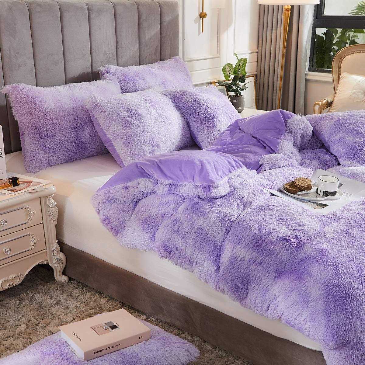 Uhamho Faux Fur Velvet Fluffy Bedding Duvet Cover Set Down Comforter Quilt Cover with Pillow Shams Ultra Soft Warm and Durable