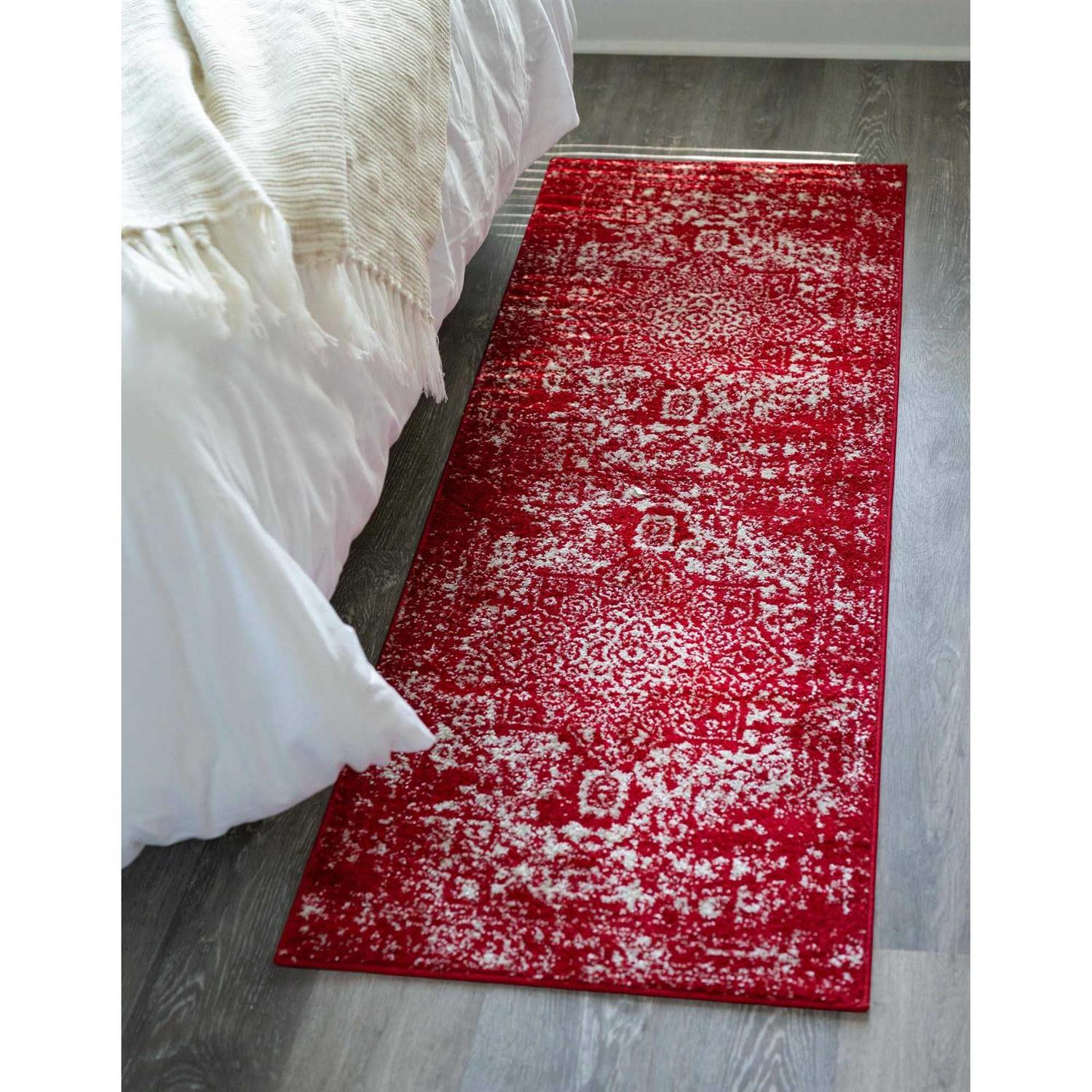 Designed to withstand everyday wear, this runner rug is the perfect size and shape for hallways, entryways, or anywhere you want to bring a little more style into your home. This red rug projects passion and emotion. Choose a red rug to get people talking in social spaces like living rooms or dining rooms. Lightly distressed vintage designs leap off Arlington Collection rugs in exciting contemporary colors. Medium-pile rugs provide a happy medium between durability and comfort. With occasional cleaning, they’re best in medium-traffic spaces like living rooms and bedrooms. Made with high quality polypropylene that is as durable as it is soft. Our rugs stand up abuse even in high-traffic areas. Contemporary style with a healthy helping of traditional class. The Arlington Collection features large, tribal-inspired central medallions rendered in bold contemporary colors ranging from subdued neutral Greys and ivories to playful pinks and yellows to bright and exciting multicolor looks. The distinctive distressed look adds an additional level of on-trend shabby chic style. The soft, medium-height polypropylene pile is easy to clean and perfect for medium to low traffic areas like the living room or bedroom where you want to show off your casual vintage style.
