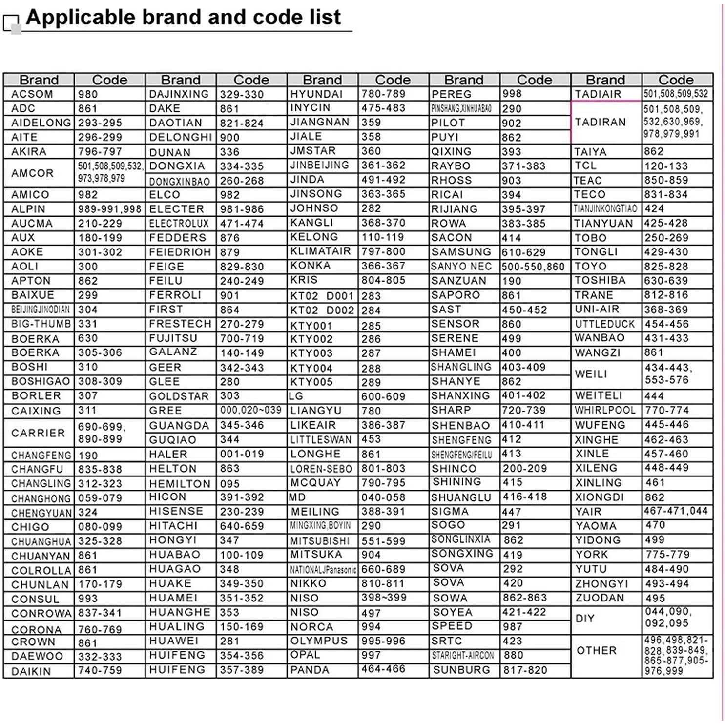 - Digital automatic code searching function. Does not support Frigidaire x old Mitsubishi