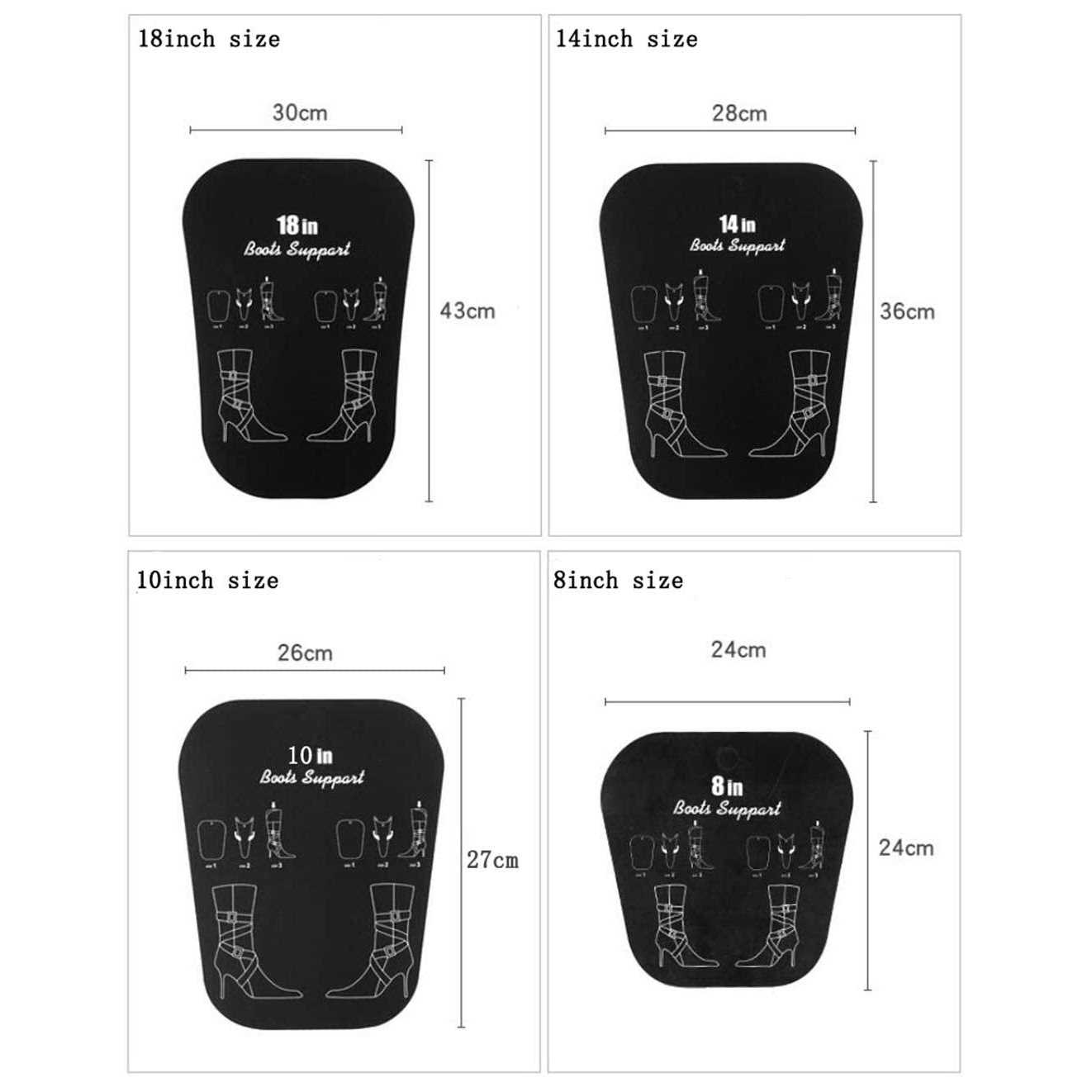 Color:Black;Material:Plastic;8inch length:approx 24cm;10inch length:approx 27cm;14inch length:approx 35.3cm;18inch length:approx 45.7cm;Package including:2pairs of each order Ideal for travel: versatility of size and lightweight material;Flexible frame fills boot leg, supporting its natural shape to reduce bends, cracks, and collapse Lighweight for easy handling, with built-in hanging notch to store boots on a shoe tree ;Great for everyday use boot storage Multifunction boot shaper fits any size and style of boot and helps prevent cracking and sagging Help to maintain the form and shape of your long and short boots, protect your boots and keeping them in good shape – Color: Black; – Material: PVC Plastic; – 8inch length: approx 24cm; – 10inch length: approx 27cm; – 14inch length: approx 35.3cm; – 18inch length: approx 45.7cm; Package including: 2pairs of each order – Wide application:Suitable for both of Men、women and Teens size boots from ankle 、calf to knee-high boot – keeping your boots in marching form to prevent cracks and creases,and it can also increase ventilation throughout the boot, keeping fresher for your feet – Applicable to the middle / high boots, stereotypes straight boots, to prevent the boots lodging fold and damage leather