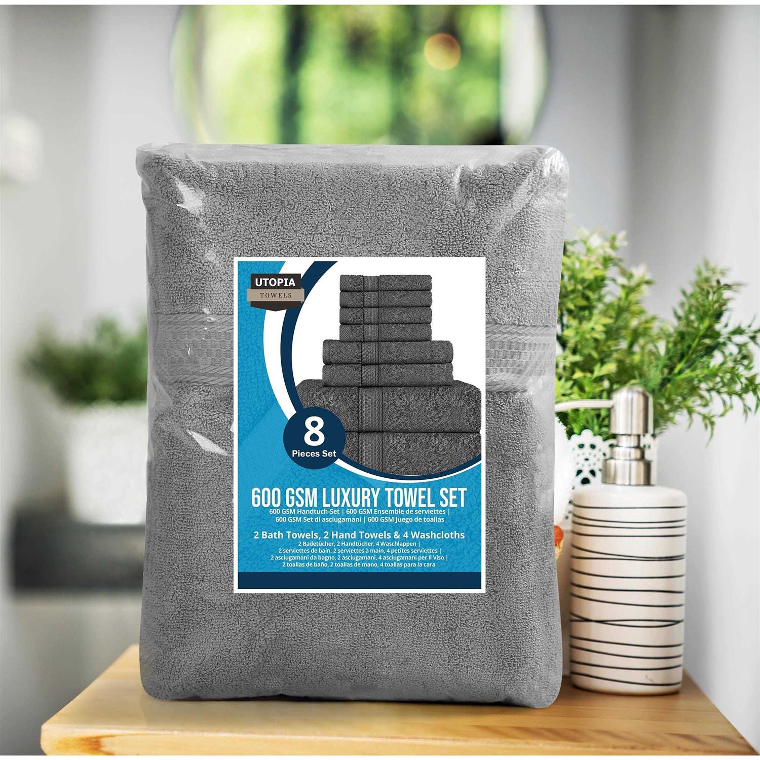 Utopia Towels 8 Piece Towel Set Grey 2 Bath Towels 2 Hand and 4 Washcloths