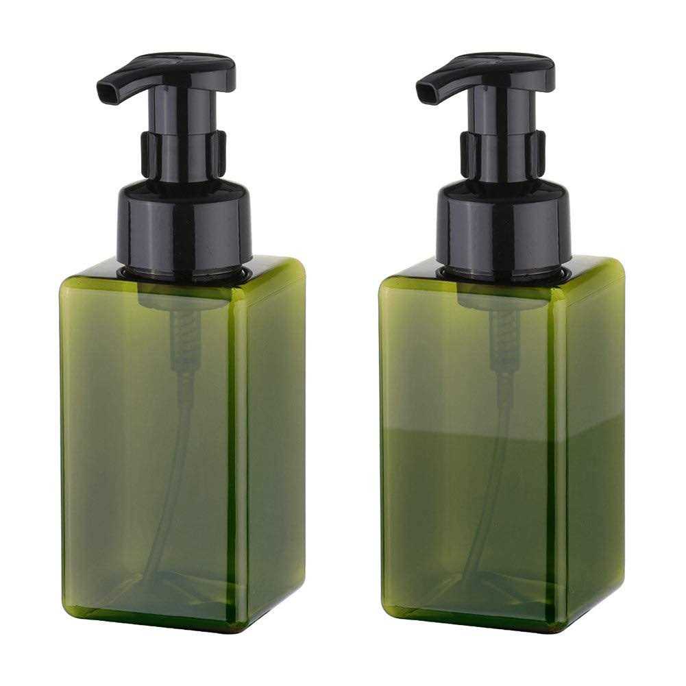 UUJOLY Foaming Soap Dispenser, 450ml (15oz) Refillable Pump Bottle Plastic for Liquid Soap, Shampoo, Body Wash (2 Pcs) (Green)