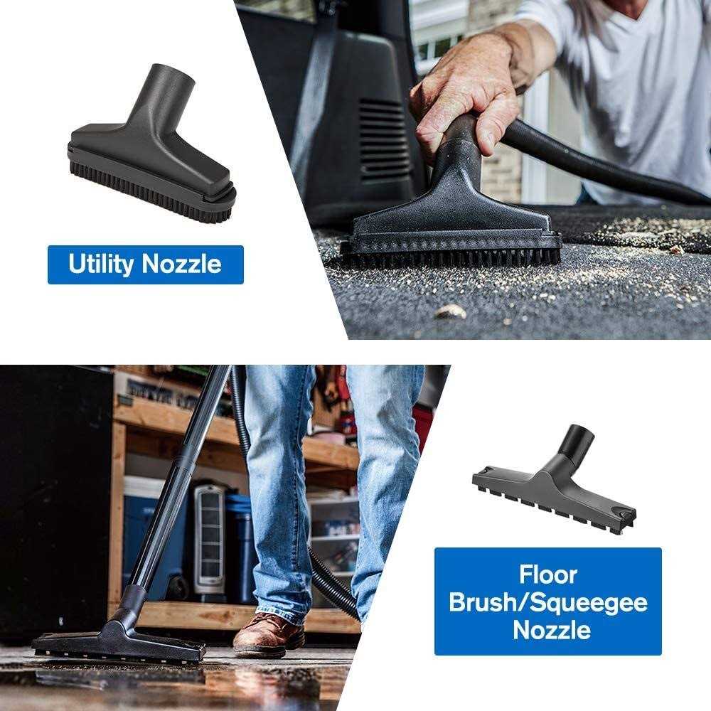 5-GALLON* 3 PEAK HP WET/DRY VACUUM5-Gallon* Rugged Polypropylene Tank – Complete Vac Organization with On-Board Hose, Cord and Accessory Storage8-Foot Power Cord with Cord Wrap17-Foot Cleaning Reach with Hose, Power Cord & Extension Wands – Durable, Wide Stance Casters for Easy Transport – Easily Converts to Blower – Balanced Top Handle Design – Large Dust Sealed On/Off Switch – Peak Horse Power3 Peak HP4 Peak HP3 Peak HP4 Peak HP5 Peak HP5 Peak HPTank Size5 Gallon8 Gallon6 Gallon9 Gallon4 Gallon8 Gallon – Cord Length8 ft10 ft10 ft10 ft15 ft33 ft – Nozzle Width1-1/4 inch1-1/2 inch1-1/2 inch1-1/2 inch1-1/4 inch – N/ABox Contents3*Extension wands,1*Floor nozzle, 1* Utility nozzle, 1*Resuable cloth filter, 1*Foam wet filter, 1*Hose(6 feet)1*Vacuum Cleaner, 2*Extension wands,1*Floor nozzle, 1* Utility nozzle, 1*Standard filter, 1*Foam wet filter, 1*Hose(7 feet)Caster Assemblies, Cartridge Filter, Foam Wet Filter, Hose Storage Brackets, 7 ft. x 1-1/2 in. Secure Fit Hose, Extension Wands, Utility Nozzle, Floor/Squeegee Nozzle, Operators Manual – Caster Assemblies, Cartridge Filter, Foam Wet Filter, Hose Storage Brackets, 7 ft. x 1-1/2 in. Secure Fit Hose, Extension Wands, Utility Nozzle, Floor/Squeegee Nozzle, Operators Manual – Caster Assemblies, Cartridge Filter, Foam Wet Filter, Hose Storage Brackets, 7 ft. x 1-1/4 in. Secure Fit Hose, Extension Wands, 2-in-1 Utility Nozzle, Floor Nozzle, Operators Manual