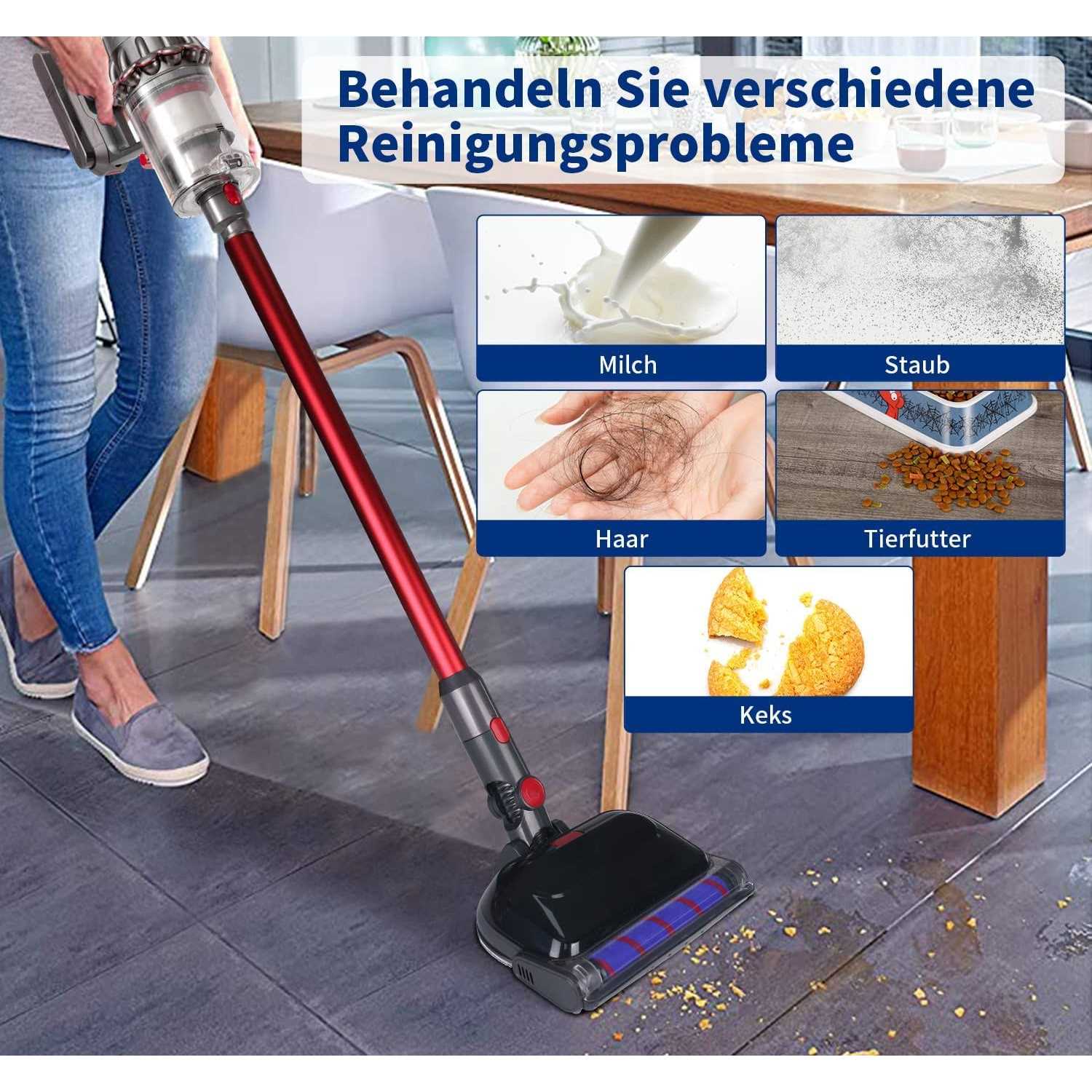 – The water from the mop attachment drips directly onto the microfibre pads and wets the pads. No marks are left behind during the wiping process, so you can use this accessory with confidence. – Best for the family with children and pets. This mop attachment can clean powdered milk, biscuit crumbs and hair on the floor very quickly and cleanly. – You can control the water speed and the rotating pad. The speed of pads and roller bars can be controlled by Dyson vacuum mode, energy saving. – Best gift for the mums who need to clean their house every day. Perfectly compatible with Dyson V15, V11, V10, V8, V7 (Animal, Fluffy, Absolute, Absolute Extra, Detect Slim Total Clean), installs in one second. – You get: T8 mop head, instructions6 washable pads,1 measuring cup and handle holder With this handle holder you can operate the hoover but you don’t have to keep pressing the power button while vacuuming.