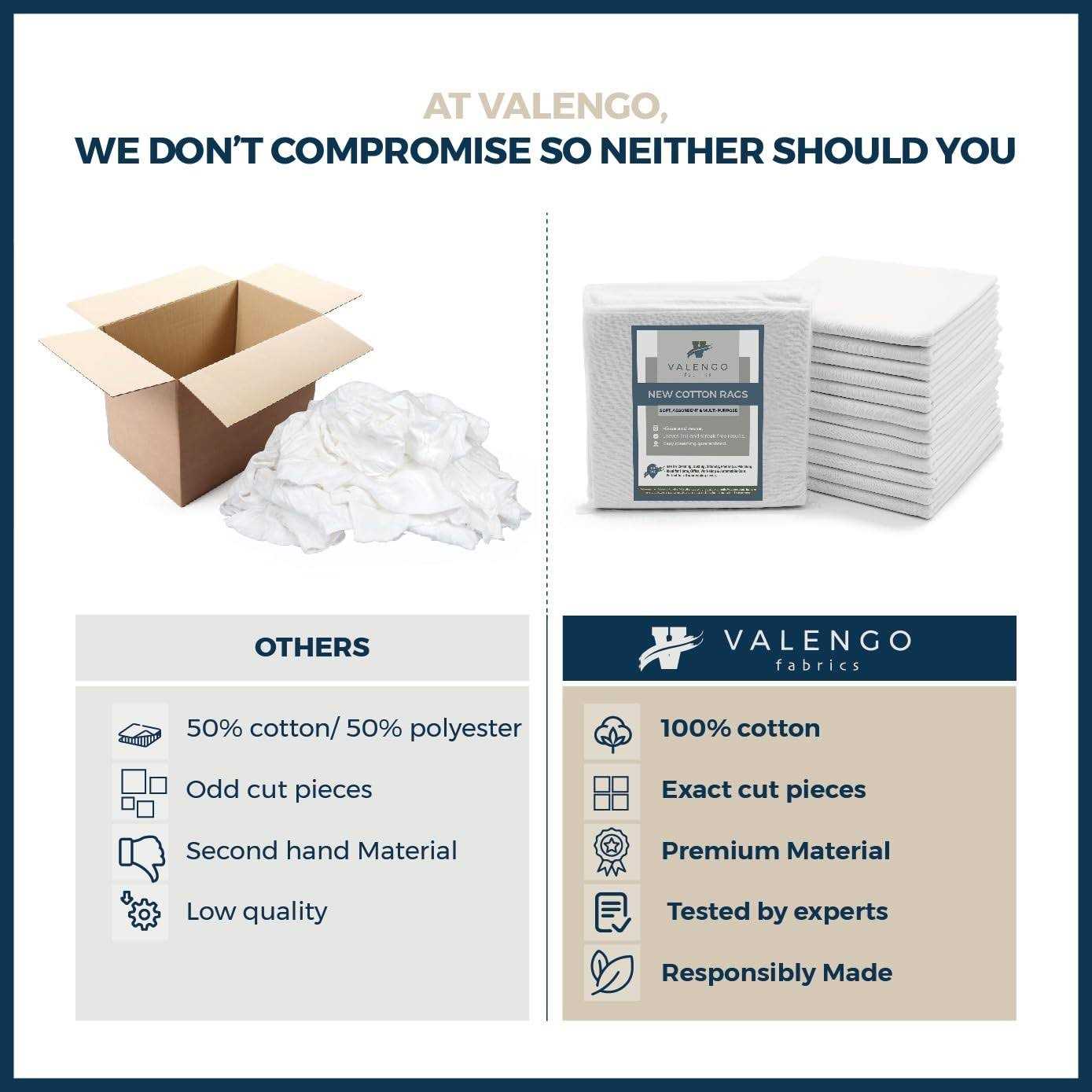 Valengo Fabrics Valengo New Lint Free Rags- 100% Cotton Rags for Cleaning Rags Cotton Cloth, Soft Tshirt Rags, Lint Free Cloth for Cast Iron, Staining Wood, Dust