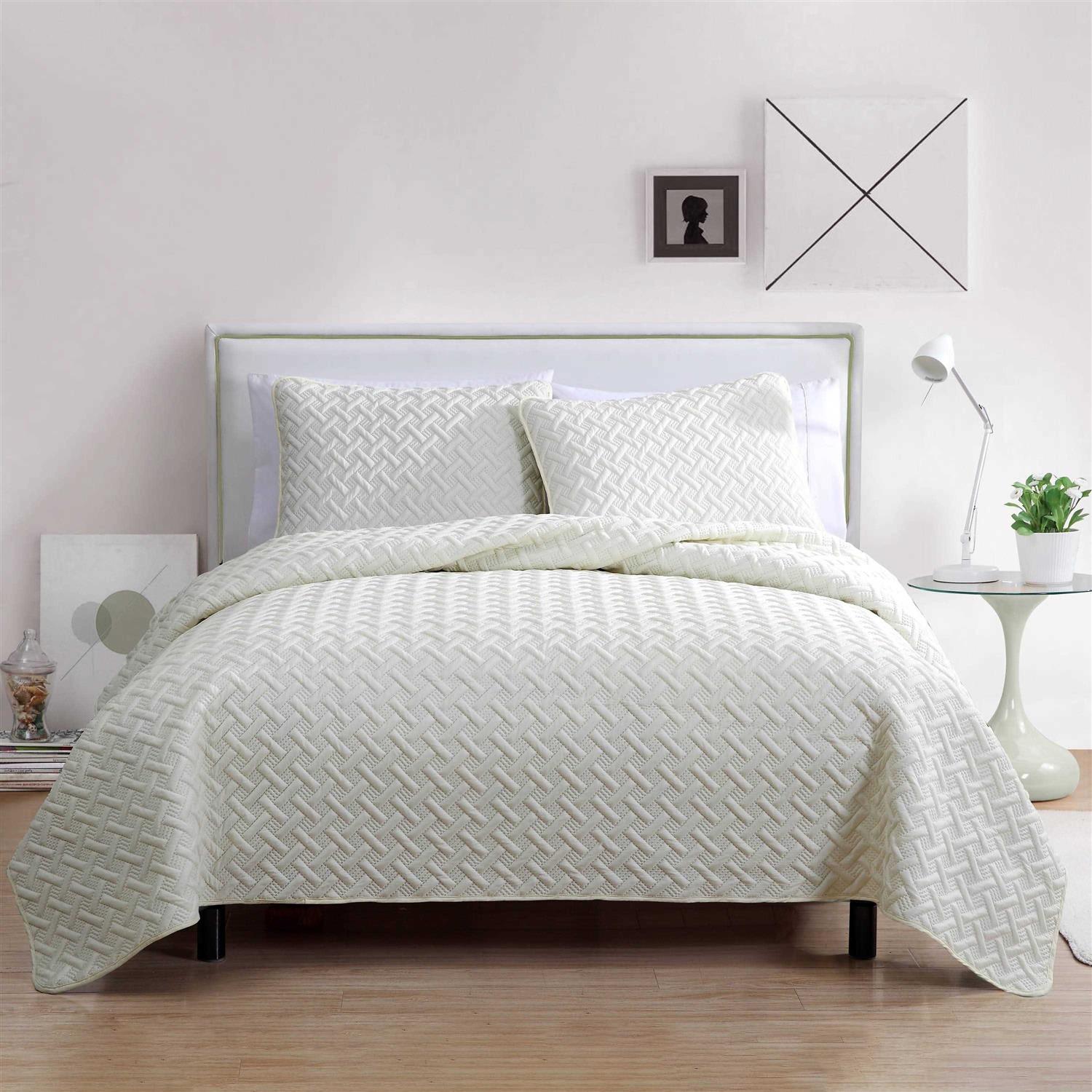 Add soft texture and unique dimension to your bedroom décor with the VCNY Home Nina Embossed Basketweave Quilt Set, which features an embossed basketweave pattern in your choice of a variety of solid colors. Lightweight, durable, and irresistibly soft, this solid bed set is made of 100percent microfiber fabric and is machine washable. Each quilt set includes a quilt and shams (one sham in Twin set) for a coordinated look.