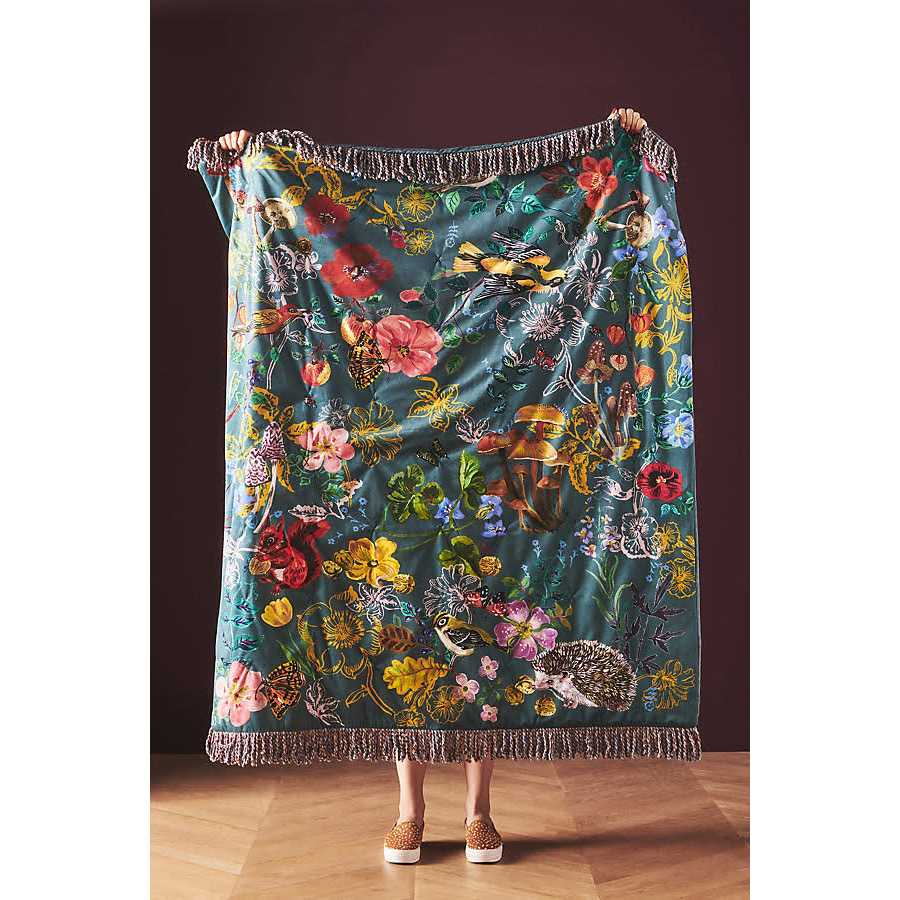 Designed for Anthropologie by Nathalie Lete, this so-soft throw blanket is adorned with whimsical woodland motifs.
