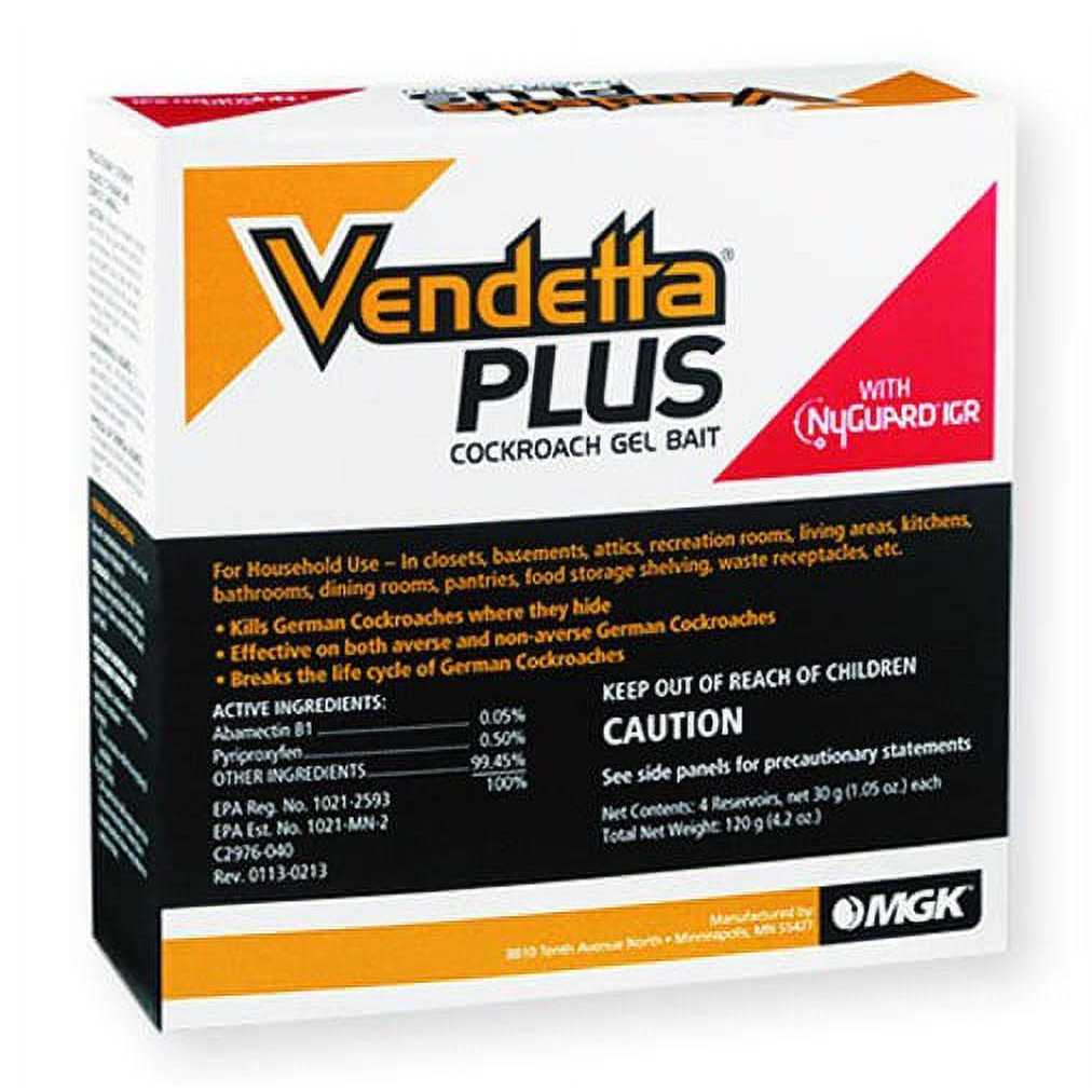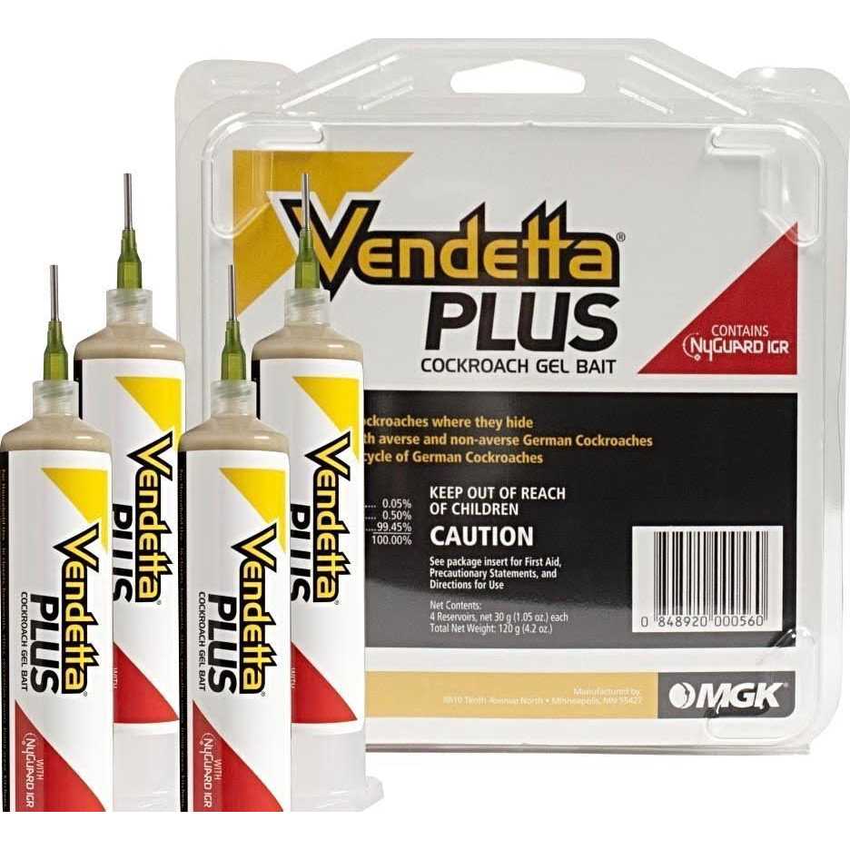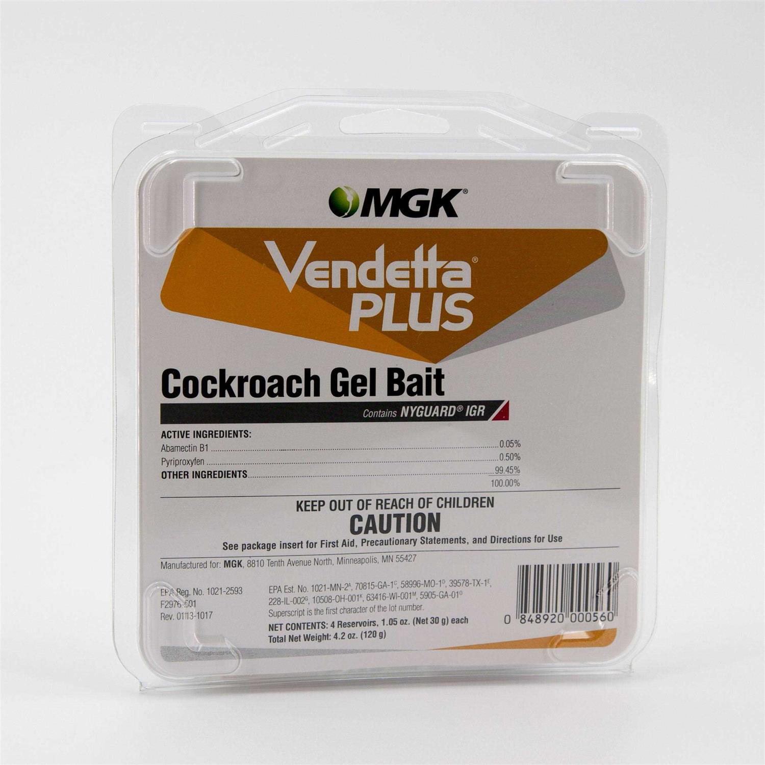 Vendetta Plus cockroach gel bait combines two modes of action in one tube. In addition to an effective cockroach bait Vendetta Plus also contains the insect growth regulator (IGR) NY Guard which interrupts the life cycle of the Roach & helps to prevent future infestations. The IGR stops reproductive potential of cockroaches exposed to a non-lethal dose or populations resistant to other actives resulting in death or sterility of the population. This product is effective against both non-averse & averse populations of German cockroaches. Vendetta Plus is a good choice for control in environments that are tough to control & against heavy infestations killing cockroaches where they hide. Vendetta Plus does not contain any of the big 8 food allergens (tree nuts, fish, shellfish, cow milk, peanuts, Wheat, soy, or eggs), but is highly palatable to roaches. The innovative bait matrix does not get runny in high heat & stays attractive to roaches for months after placement.