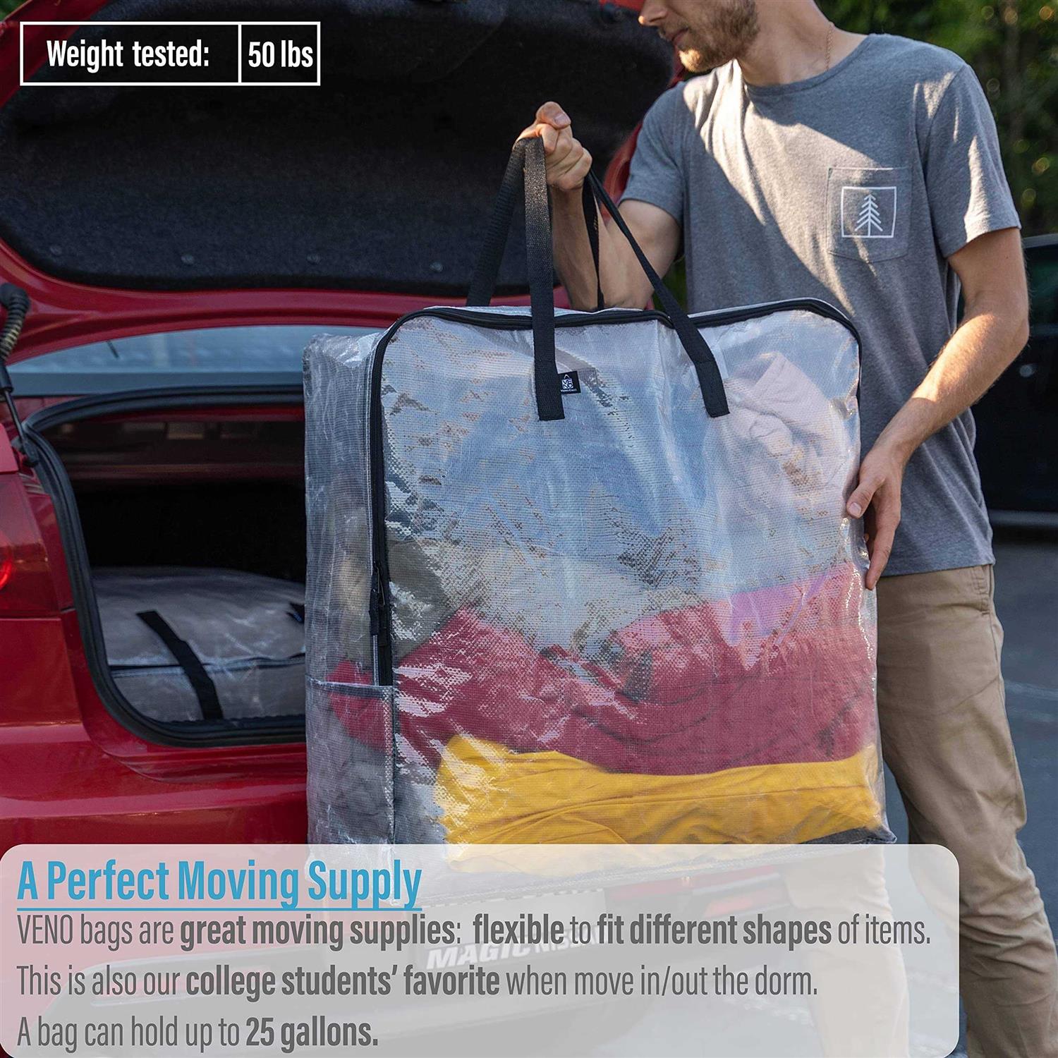 Veno Bag Over-Sized Clear Storage Bag w/ Strong Handles and Zippers for College Carrying