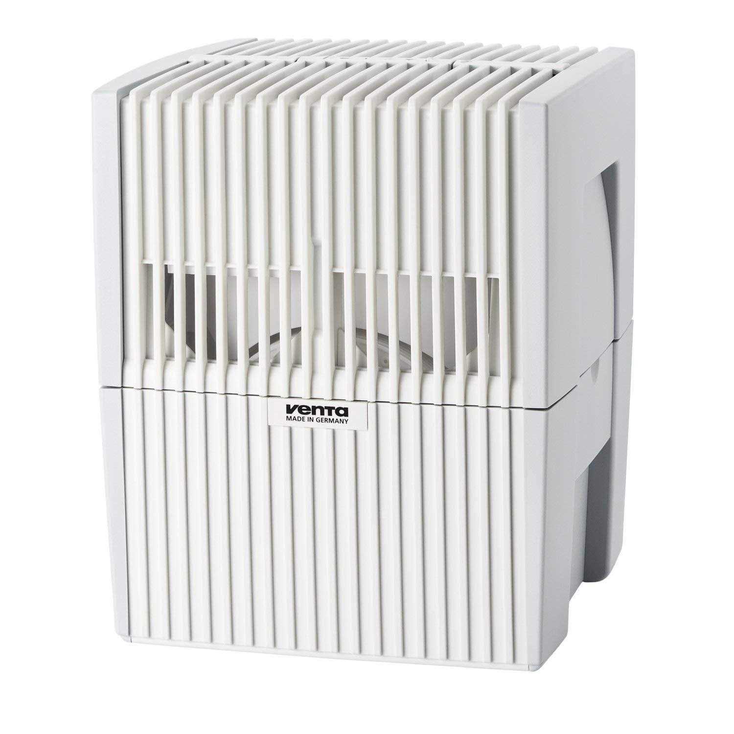 For rooms up to 200 square feet, the Venta LW15 Airwasher humidifies dry room air while simultaneously purifying it by removing dust, pollen, pet dander, and other airborne pollutants down to 0.3 microns in size. The Venta Airwasher is both a filter-free humidifier and filter-free air purifier, all in one lightweight unit. Additionally, Venta Airwashers do not produce the “white dust” common with other humidifiers due to the fact that we use Cold Water Evaporation Technology. By implementing the principle of humidifying and purifying air for homes and offices without using filters, the Venta Airwasher is hygienic, simple to use and easy to clean. Using a Venta Airwasher will help to reduce common cold symptoms caused by dry air like dry skin, chapped lips and sinus congestion. Keep allergies under control against dust mites, animal dander, and pollen. Perfect indoor air quality cleansed by a Venta Airwasher helps to improve concentration and reduce headaches. Properly humidified air will also eliminate static electricity and work to preserve wooden furniture and musical instruments. Venta Airwashers offer the consistent performance of high-end German engineering; delivering perfect indoor air quality with both humidified and cleaner air to breathe. This compact machine is powerful enough to work with indoor spaces of up to 200 square feet, perfect for a bedroom, office or nursery, and is designed to resist over-humidifying the interior. Made of Polyurethane, the Venta LW15 Airwasher is available in black or white color options.