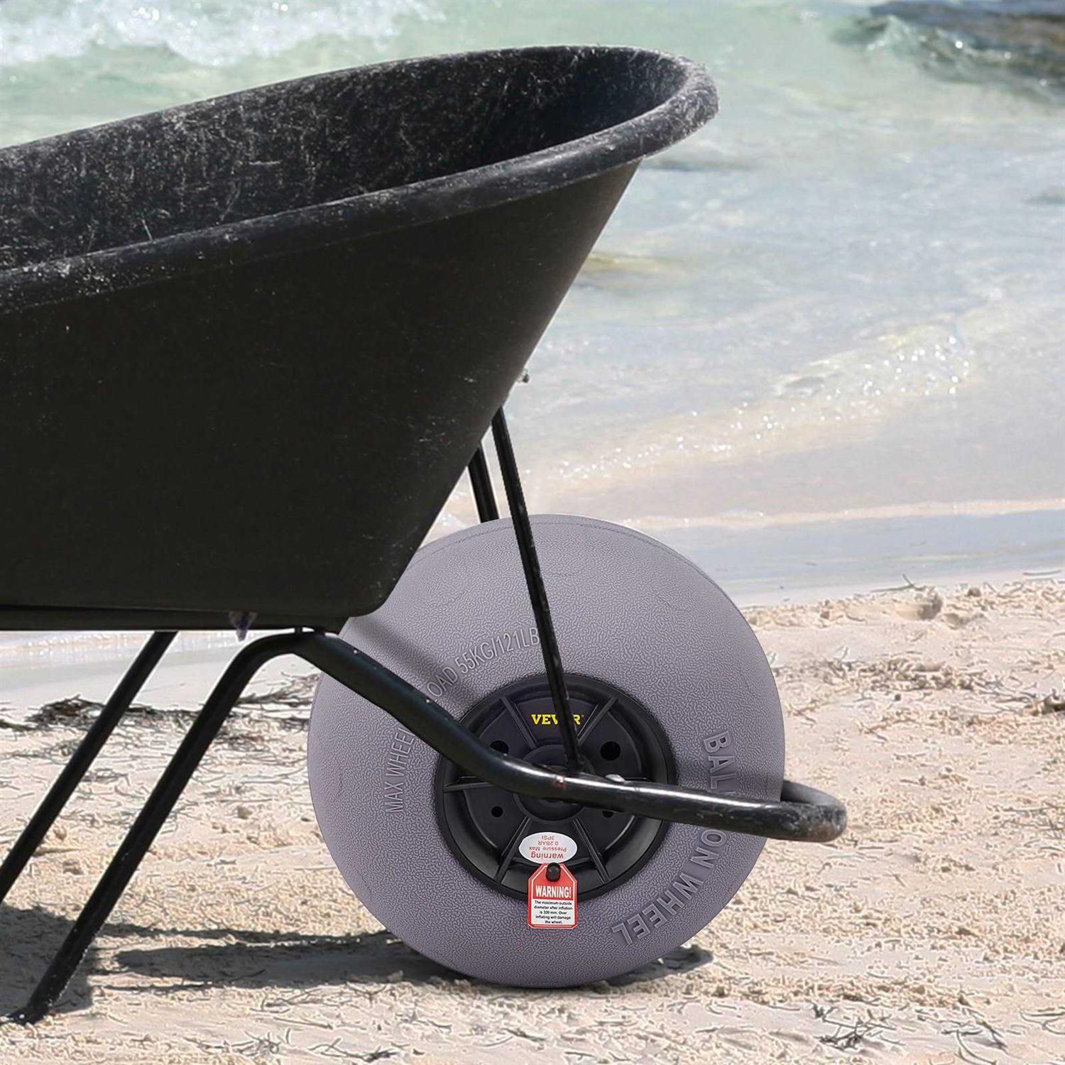 Wheels, TPU Material and 121 lbs. Loading. Think about the last time you went to the beach or any time when you had to bring a lot of stuff to make the day awesome. Wouldn’t it have been nice to have a nifty helper. Fortunately, VEVOR’s beach wheels are here to help your cart move and transport effortlessly. Wherever you go, the balloon wheels will be right there to make sure you’ve got everything under control. Roll out in style with our wheels. Wheel make sure nothing stops you this summer.