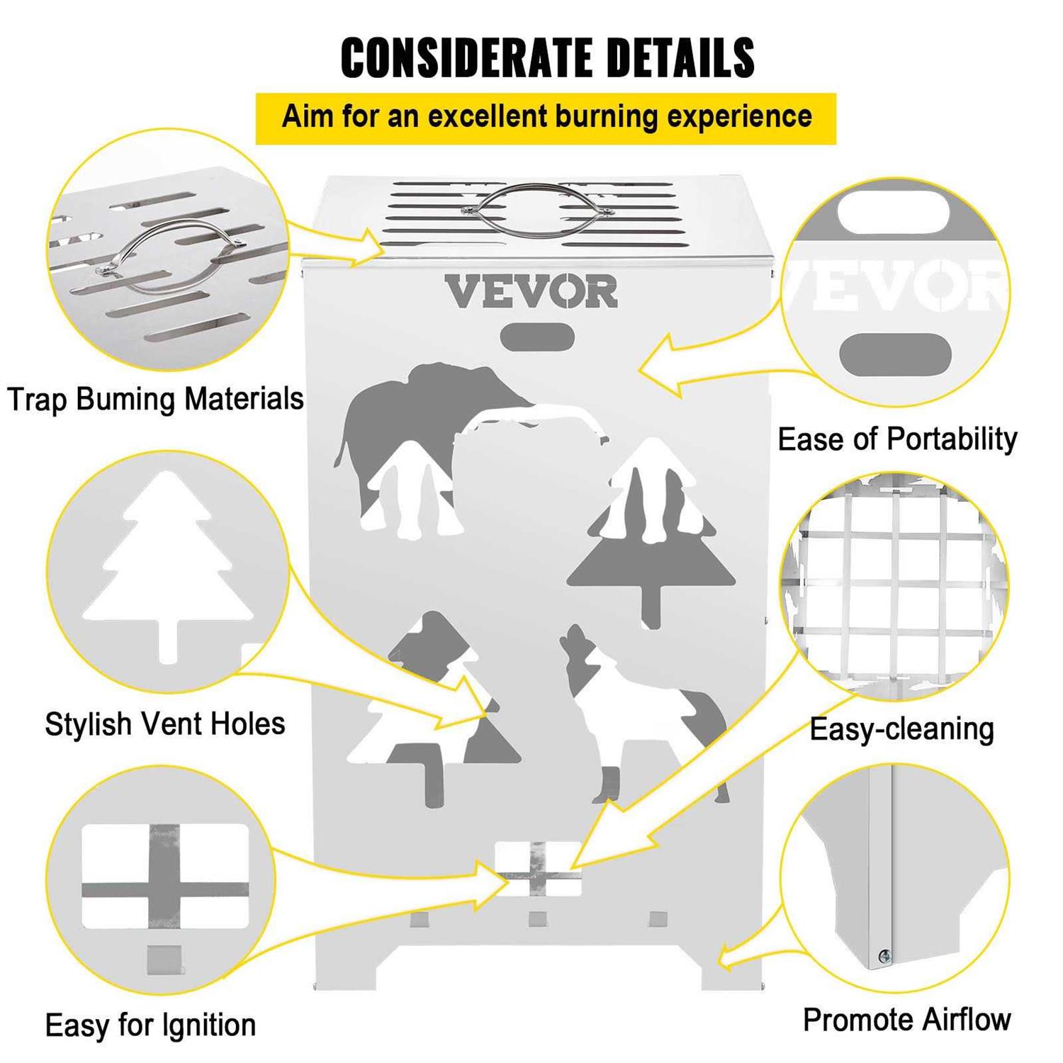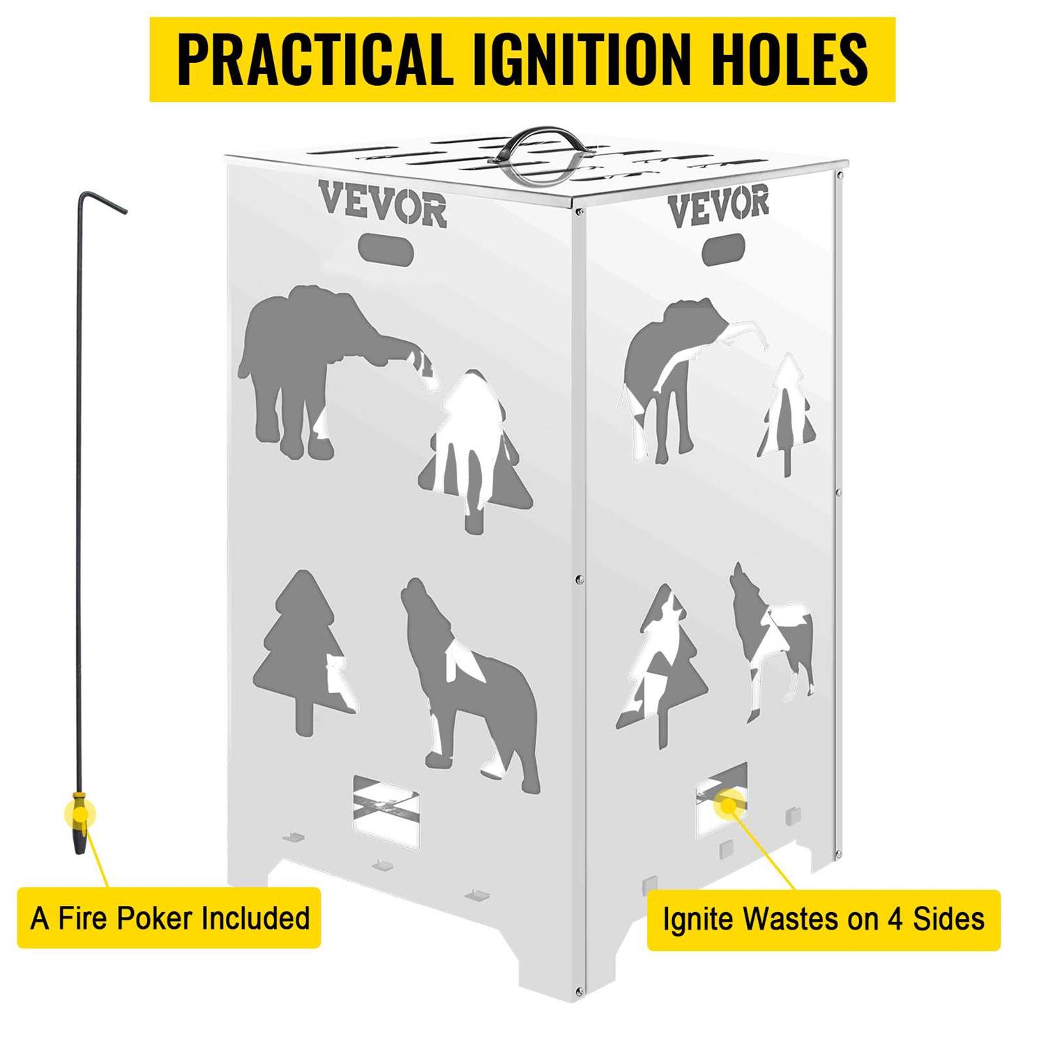 VEVOR Burn Barrel Burn Drum Incinerator Barrel 14x14x24 for Yard Waste HXBXGBDDW1424HSO3V0 840349907956 14x14x24 inch Burn Barrel This burn cage adopts 430 stainless steel material giving it high heat-proof rust-proof and deformation-proof. It has well-designed ignition holes with a poker for conveniently lighting the fire. Bottom legs and vent holes offer you a less-smoke experience. It is equipped with a practical lid handles for easy transport and bottom crossed plates for easy cle…