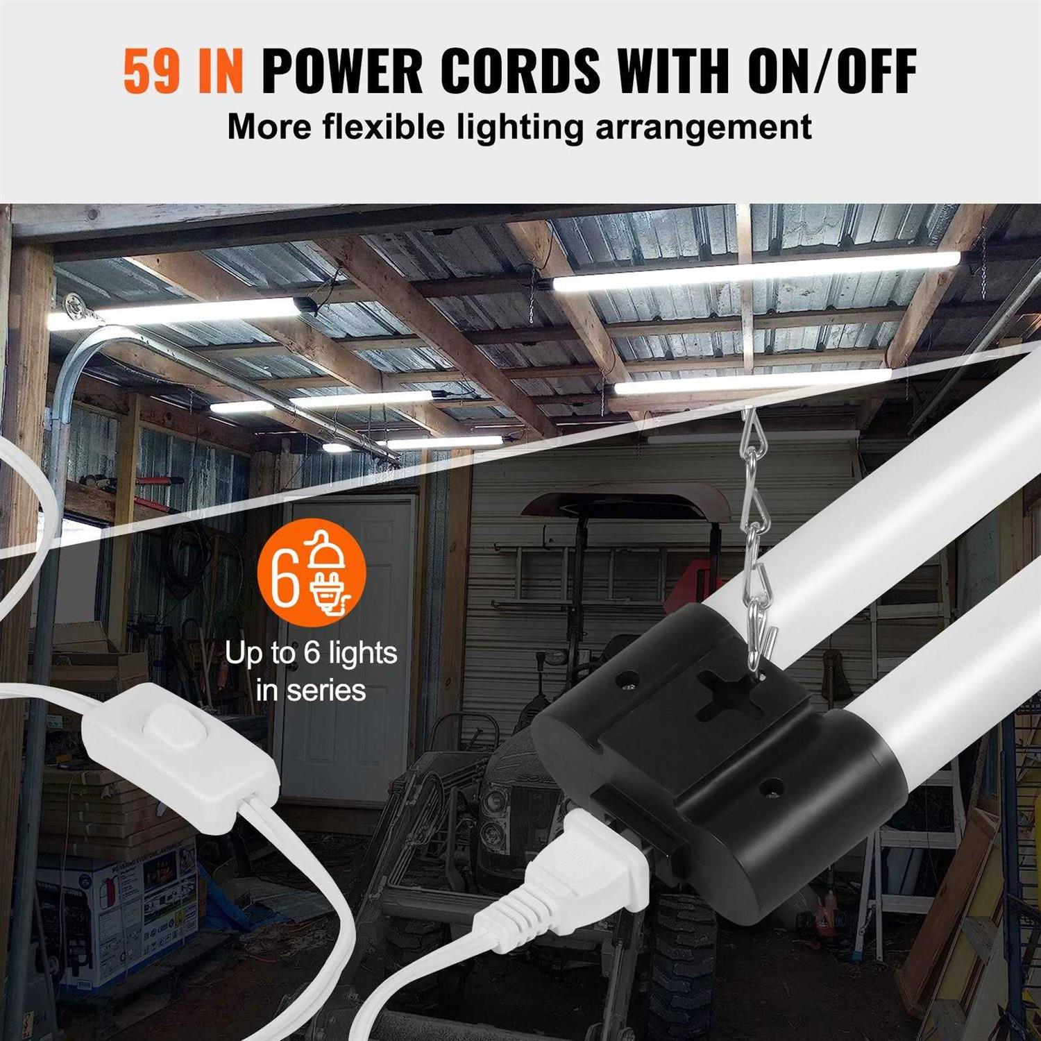VEVOR LED Ceiling Light 4 ft. 40-Watt Equivalent Integrated LED Shop Light 4500 Lm with On/Off Switch for Garage Home 10-Pack