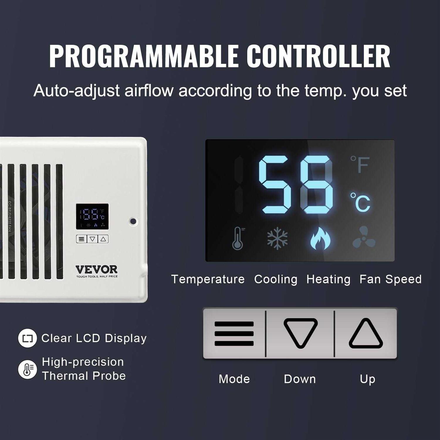 VEVOR Register Booster Fan Quiet Vent Booster Fan Fits 4” x 12” Register Holes with Remote Control and Thermostat Control Adjustable Speed for
