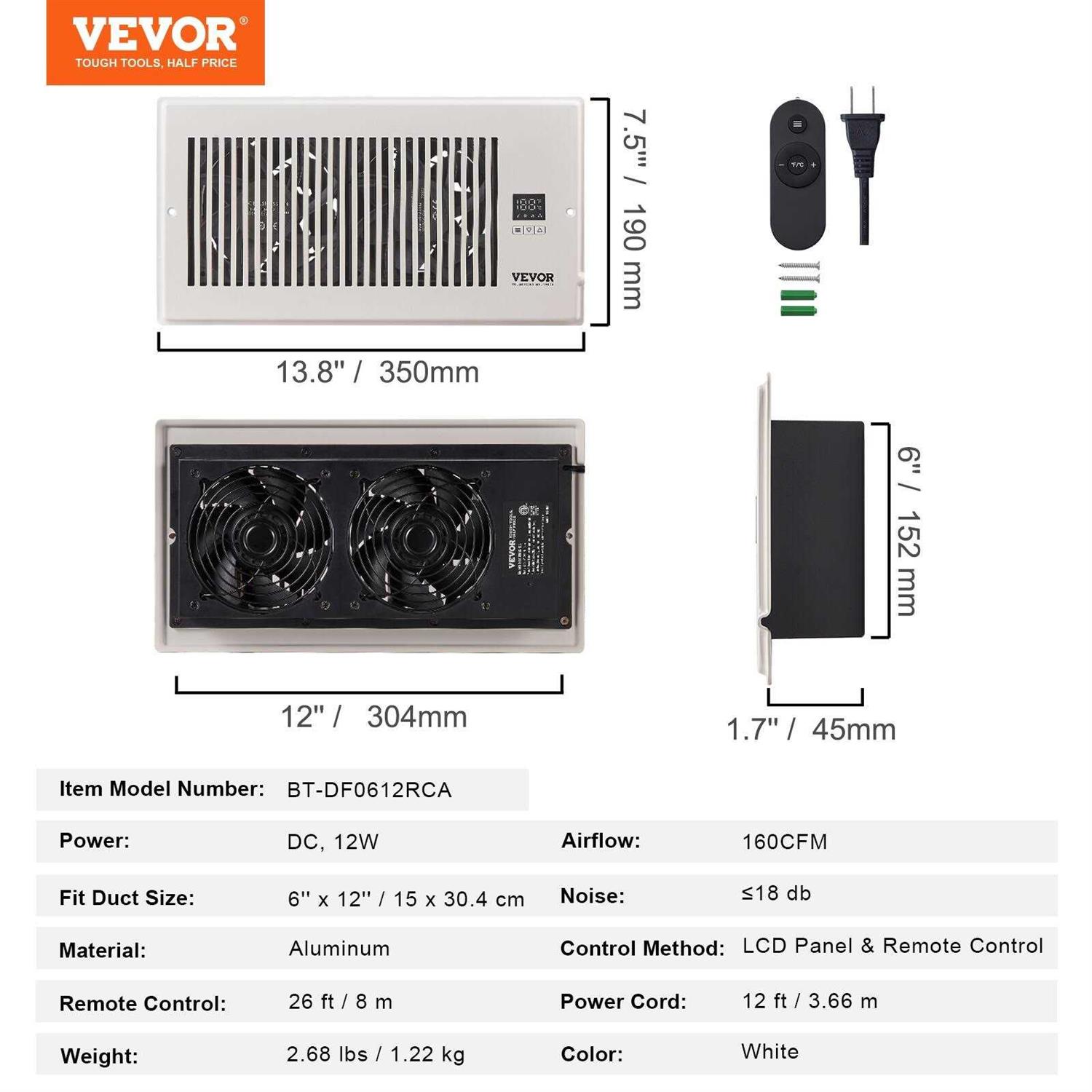 VEVOR Register Booster Fan Quiet Vent Booster Fan Fits 6 x 12 Register Holes with Remote Control