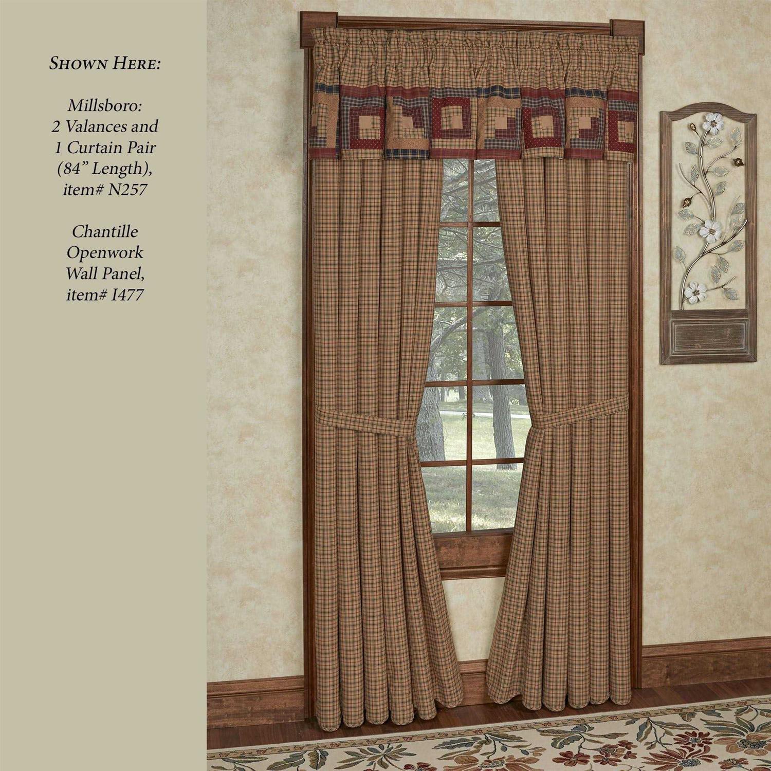 The Millsboro luxury king quilt set includes one luxury king quilt, two king shams and one king bedskirt. The quilt measures 120″W x 105″L and features a patchwork log cabin block pattern. It has a 100% cotton shell and fill and is hand-quilted with “stitch in the ditch” quilting. A variety of fabrics include burgundy, tan and navy plaids and other small patterns. The king shams each measure 21″ x 37″ and the bedskirt measures 80″ x 78″ with a 16″ drop. These items are imported. Please note, colors may appear differently in different resolutions and on different computers. Machine wash, gentle cycle. From The Victorian Heart Collection made by VHC Brands.