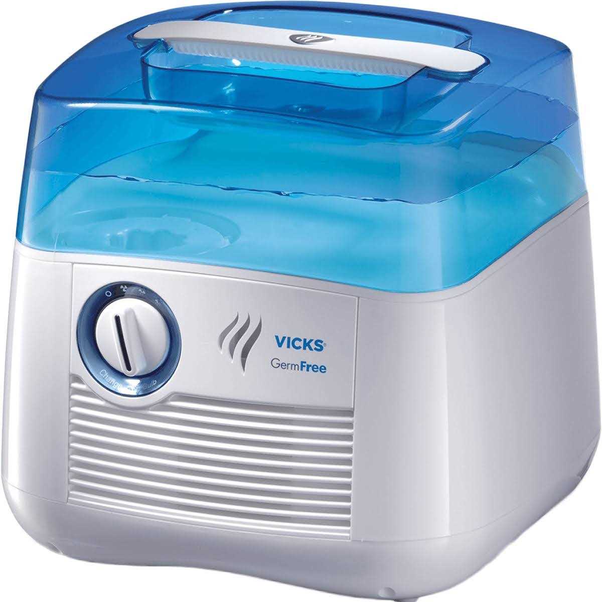 The Vicks Cool Moisture Humidifier helps you breathe better and sleep more comfortably for everyday comfort. Its patented germ killing technology kills up to 99.9% of virus, fungus, bacteria and mold in the unit’s water after 2 hrs of continuous use on high1. This provides the assurance that the moisture the humidifier emits is virtually free of germs*. UV technology kills up to 99.9% of bacteria, mold, fungus and virus in the units water Self regulating evaporative system adjusts output for maximum comfort Quiet Operation won’t disturb sleep, For use with Vicks VapoPads Simply add a menthol (VSP-19) or Sleepytime (VBR-5) scent pad for soothing scent Runs up to 24 hours per filling 1 gallon water tank Designed for large sized rooms 3 year limited warranty Use with replacement filter WF2 *Based on independent laboratory testing report. Test No. 3163185COL-001. Results are based on the reduction of the following: Kills up to 99.9% of listed bacteria, mold, fungus and virus that exist in tap water -a. E.Coli: 99.9% after 2 hrs of continuous use b. P. citrinum: 99.9% after 2 hrs of continuous use c. A Niger: 99.9% after 2 hrs of continuous use d. MS2: 99.9% after 2 hrs of continuous use.