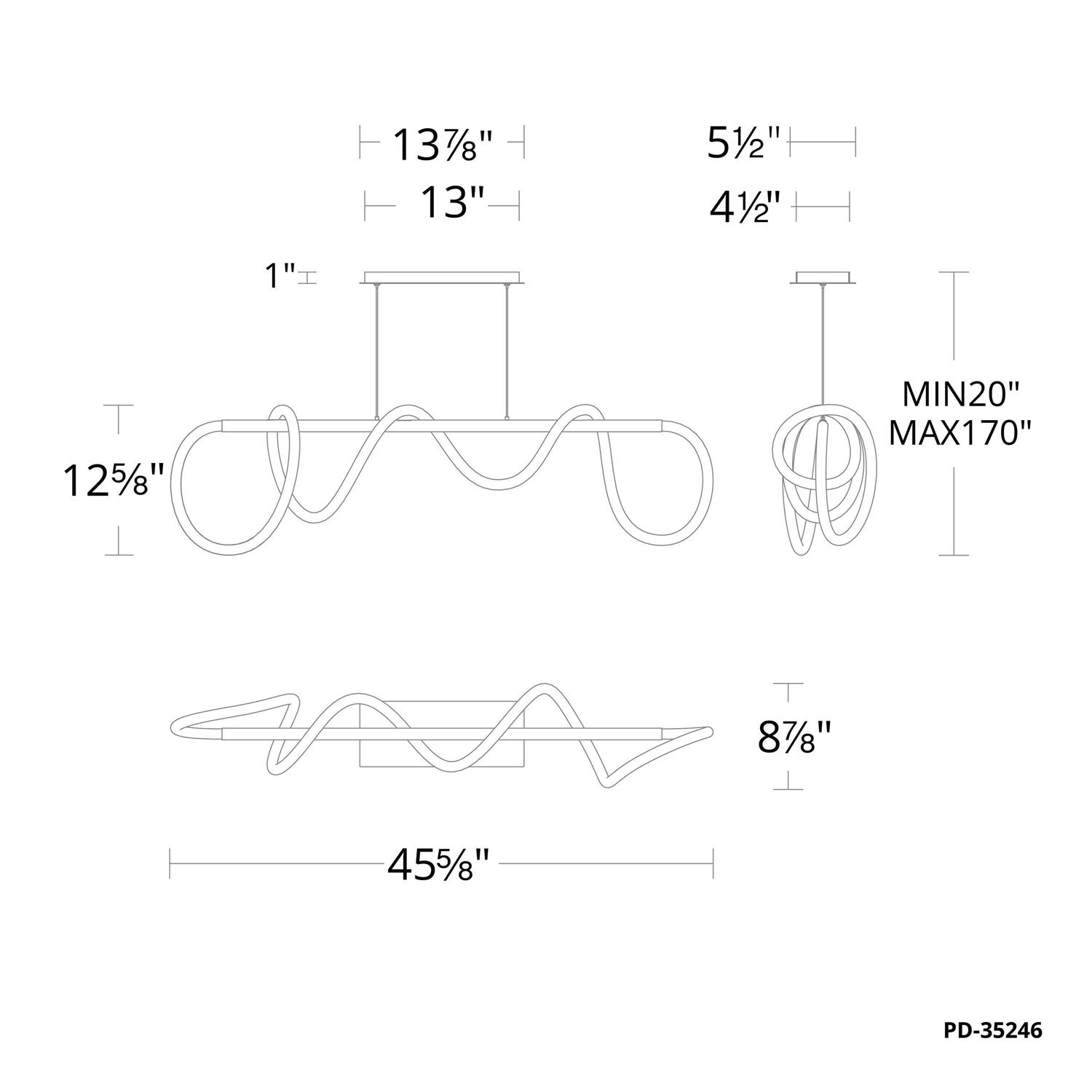 Tightrope is a new LED Pendant from dweLED by WAC. Extraordinarily curved silicone wrapped around a metal bar that provides omni-directional diffused illumination. The diffuser can be adjusted in the field to create your desired and unique, modern aesthetic. This perfect, eye-catching luminaire looks great above kitchen islands, bars and counters. Features a field adjustable electrified aircraft cable for an ultra-clean look. Tightrope uses just 30 watts and illuminates with LEDs that feature a high 90 color rendering index and CCT of 3000 Kelvin. Tightrope includes a thin canopy that conceals a 120-220-277V universal integrated LED driver. The LEDs have a 50,000 hour rated life and deliver more than 2100 lumens. This LED luminaire is ETL and cETL listed for damp locations and dims down nicely with an electronic low voltage, 0-10 Volt, or TRIAC dimming system.