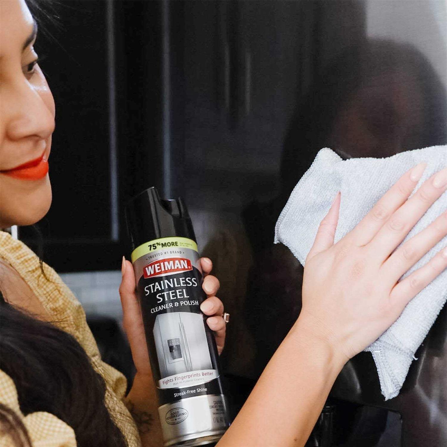 This Weiman stainless steel cleaner and polish is the #1-rated product for stainless steel care on the market. Specially formulated for stainless steel surfaces, Weiman stainless steel cleaner and polish is excellent for removing dirt, residue, fingerprints, water spots and whatever other markings you notice on your stainless steel. It provides a brilliant, streak-free shine without any hard rubbing. Perfect for use on refrigerators, dishwashers, ovens and more.