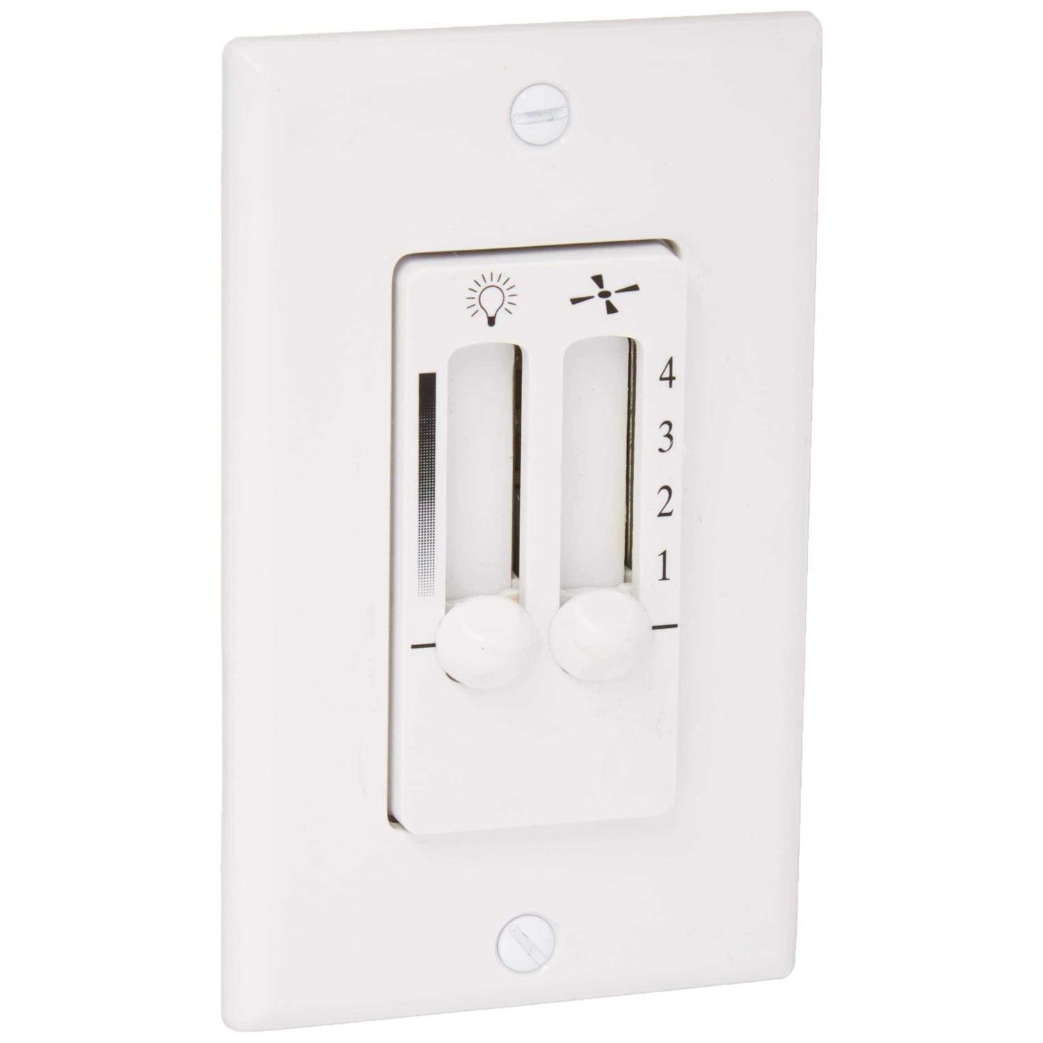 This replace a toggle switch and pull chain with 2 easy-to-use sliders. It can turn any 3-speed fan into a 4-speed fan, and offers 4 convenient settings (high, medium-high, medium, and low) so you can use the right amount of airflow to maximize your comfort. You can also dim your lights using the full-range sliding dimmer switch on the wall plate. The 120-volt/60 Hz wall control features 3-wire installation for use in a standard junction box. C-UL-US-Listed, the unit can handle a fan maximum of 1-1/4 amps and a light maximum of 300 watts. A wall plate is included for installation.