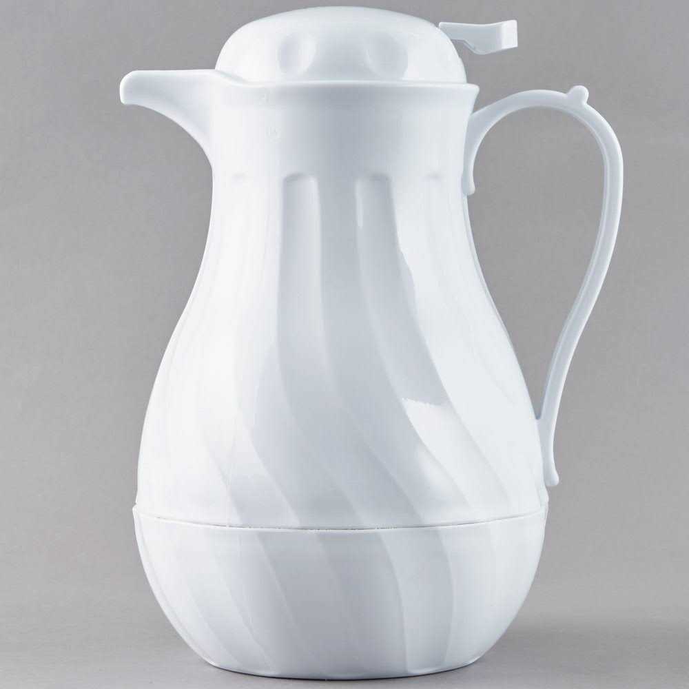 Winco VSW-64W, 64-Ounce White Thermal Swirl Server is an essential item for any dining place. This beautiful server is ideal for use with your coffee, tea or simply hot water and more. The server features a foam-insulated interior that ensures that the liquid inside the server remains hot for up 6 hours. Moreover, 64-ounce capacity allows for entertaining your guests while the push-button top makes pouring easier than ever before. The classical swirl design makes the utensil even more sophisticated and the durable plastic construction ensures long-lasting use.