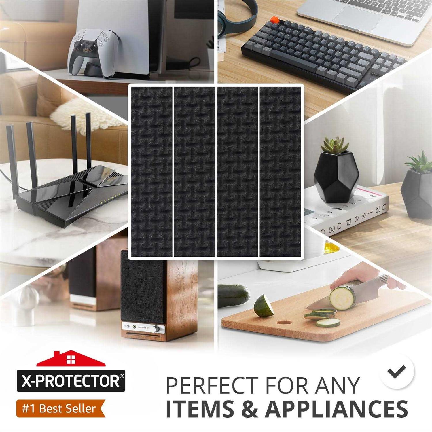 X-Protector nonskid self-adhesive rubber pads will keep items from sliding! All kinds of hard flooring or surface will stay secure if you put X-Protector rubber pads under your furniture. X-Protector rubber pads are made of premium rubber foam and tenacious adhesive. Rubber strips are good for keyboards, laptops, etc.